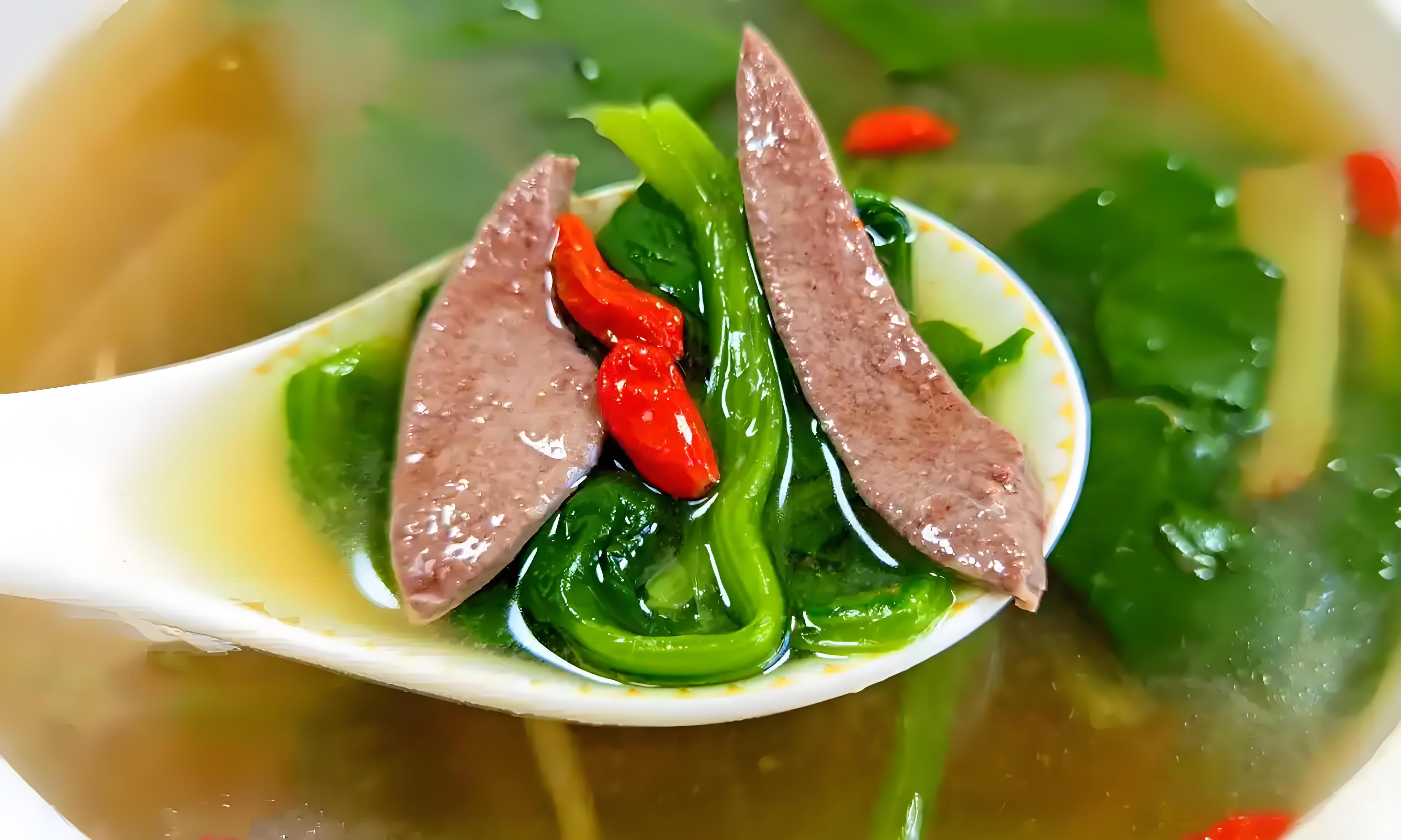 點評: 夏天出汗多、消耗大,容易氣血不足,感覺疲乏。豬肝是補鐵補血的“高手”,菠菜也富含鐵和葉酸。