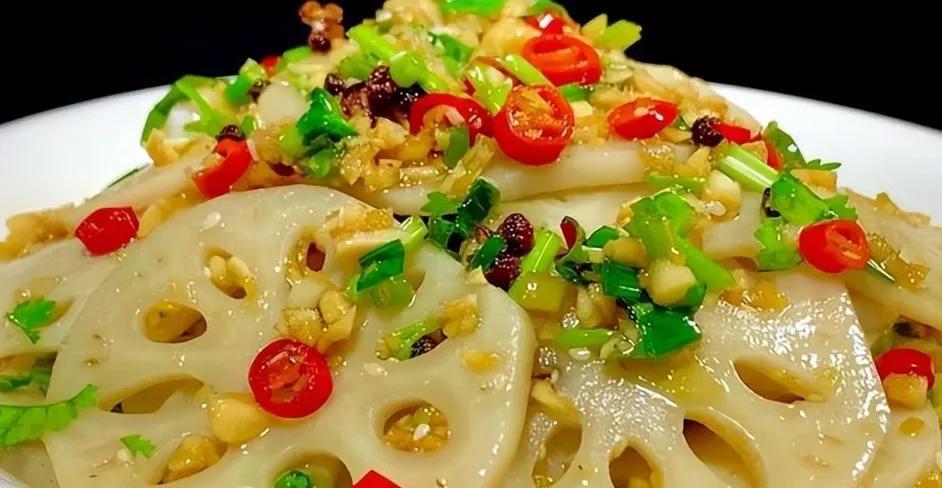 1、刮掉蓮藕的外皮,將其切成薄片,然後放入白醋、食用鹽和水中浸泡20分鐘。切一些蒜末、薑末、小米椒和蔥花、香菜備用。將姜蒜加入一勺白芝麻中,淋上熱油,以激發香味。