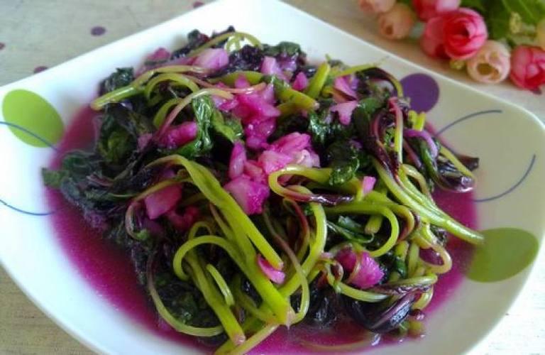 做法:1新鮮嫩的紅莧菜擇好, 去掉根部,掰段,清洗,瀝乾水分
