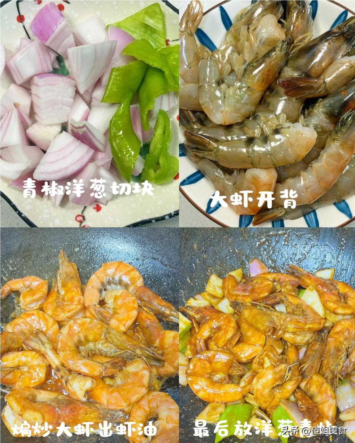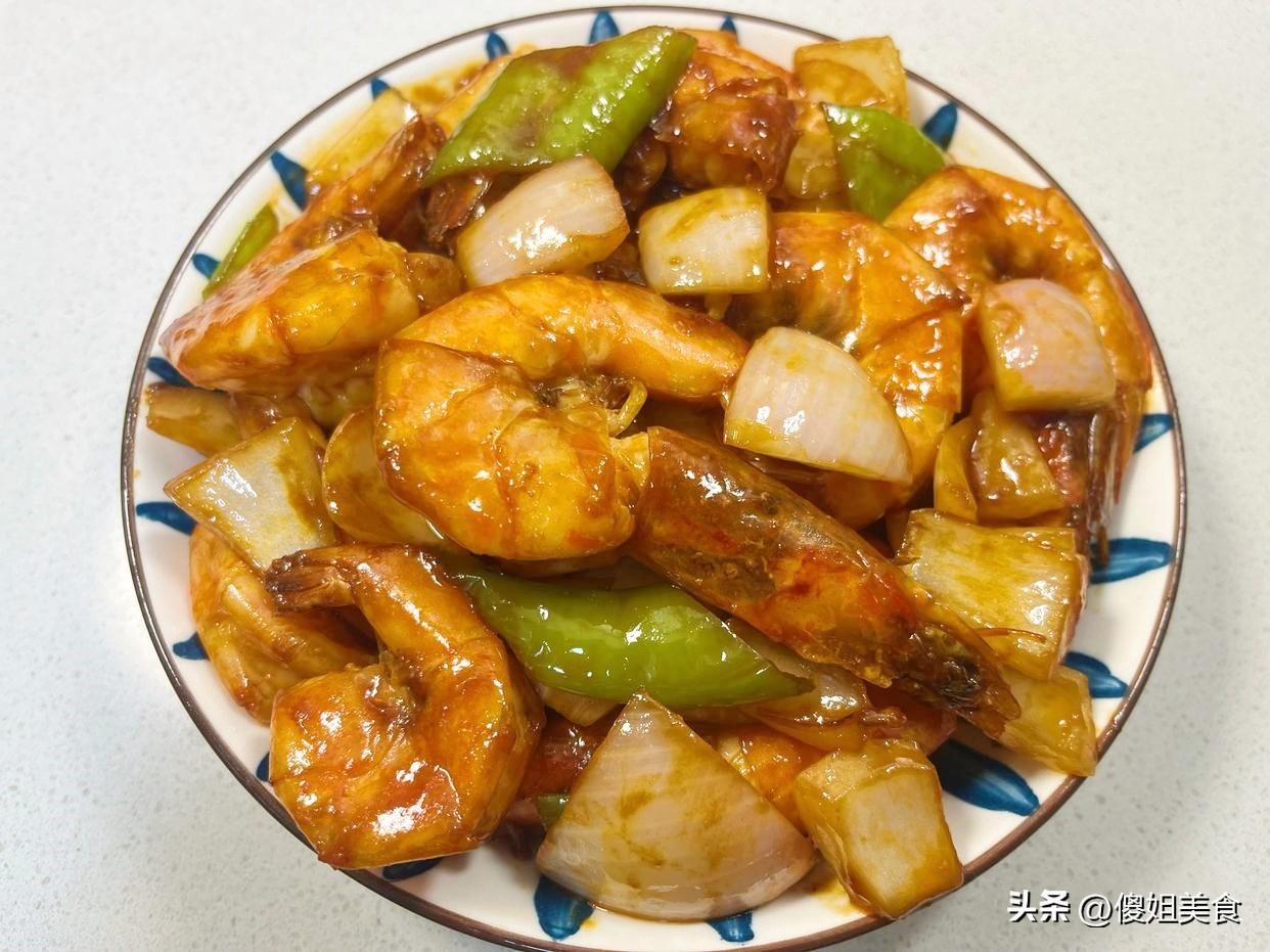這道菜的精髓在於洋蔥要炒透,炒出甜味;大蝦要快炒保嫩。 大蝦的鮮甜和洋蔥的微辛完美融合,一口下去,滿滿的幸福感!