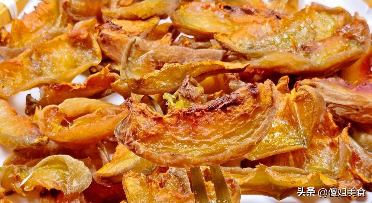 4、把煮好的桃肉撈出來,瀝瀝多餘的糖汁(這糖汁可別扔!兌點冰水或蘇打水,就是絕妙的桃子風味飲料!)。然後就是晾曬啦!有太陽的日子最棒:找個透氣的網架或者竹簸箕,鋪上烘焙紙(防粘),把桃肉一片片鋪開,別疊羅漢。放在陽光充足、通風好的地方曬。沒太陽?有烤箱/空氣炸鍋也行! 低溫(70-90°C左右)慢慢烘,記得時不時開門散散溼氣,翻個面。目標是曬/烘到外皮乾爽韌韌的,捏起來裏面還帶一點點軟糯的肉感,千萬別曬成石頭!時間根據天氣和桃肉厚度來,一般太陽下曬個2-3天。收回來密封保存就行!