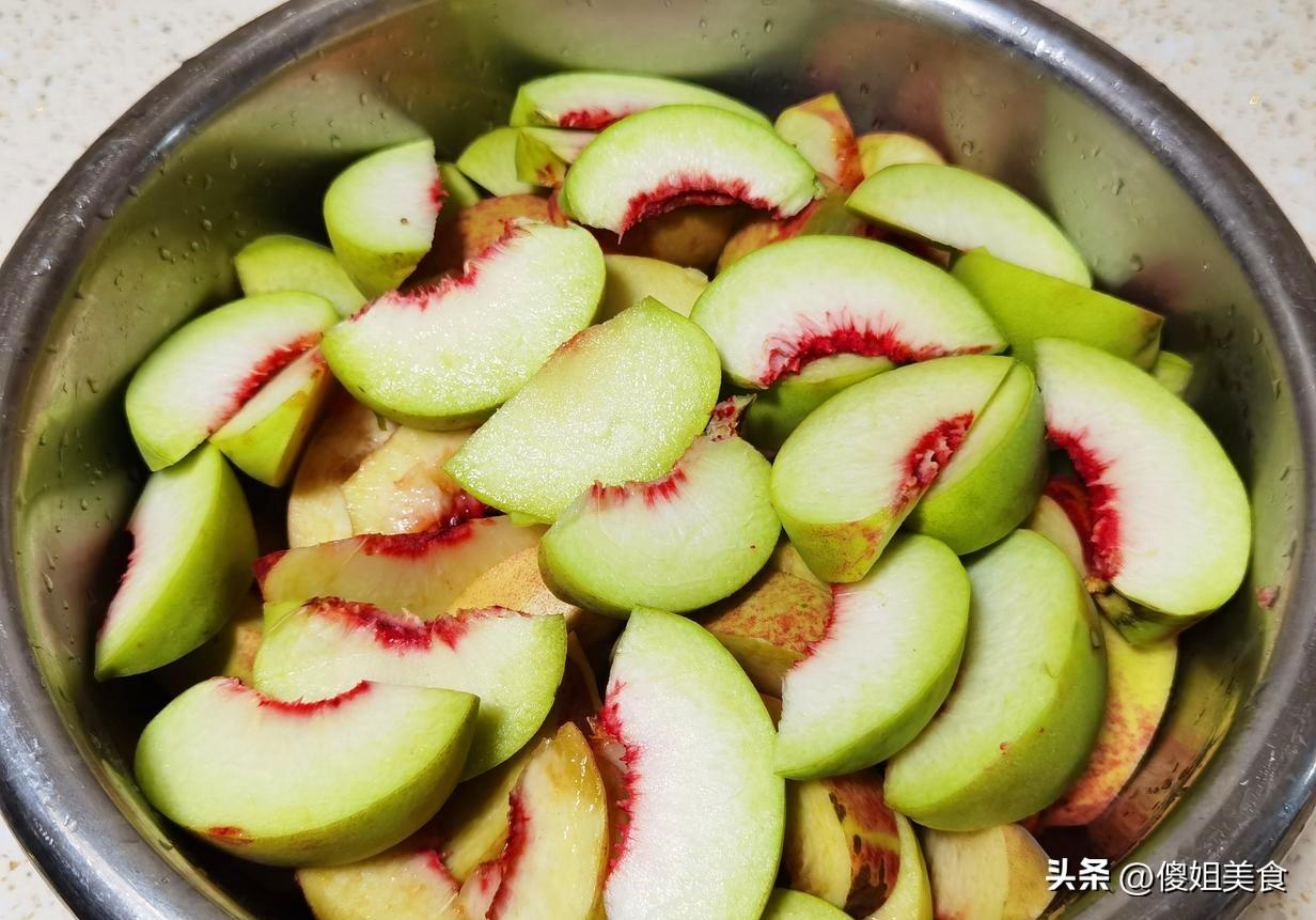 【具體做法】1、桃子洗乾淨後削皮(不削也行,但曬乾後皮可能有點韌),去核,切成你喜歡的大小,厚片(大概半釐米)或條狀都行。