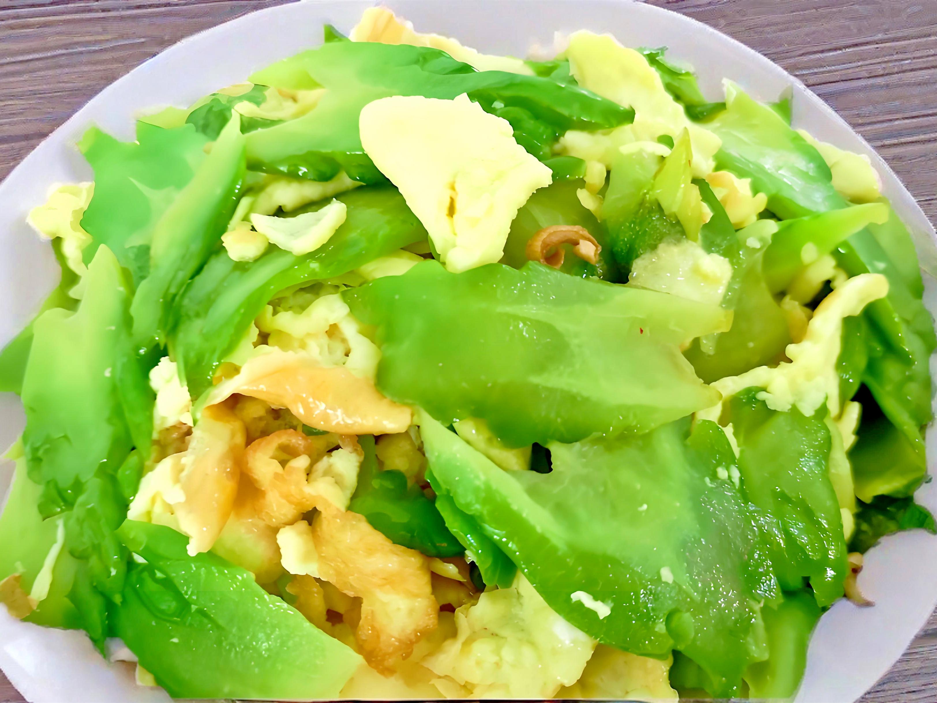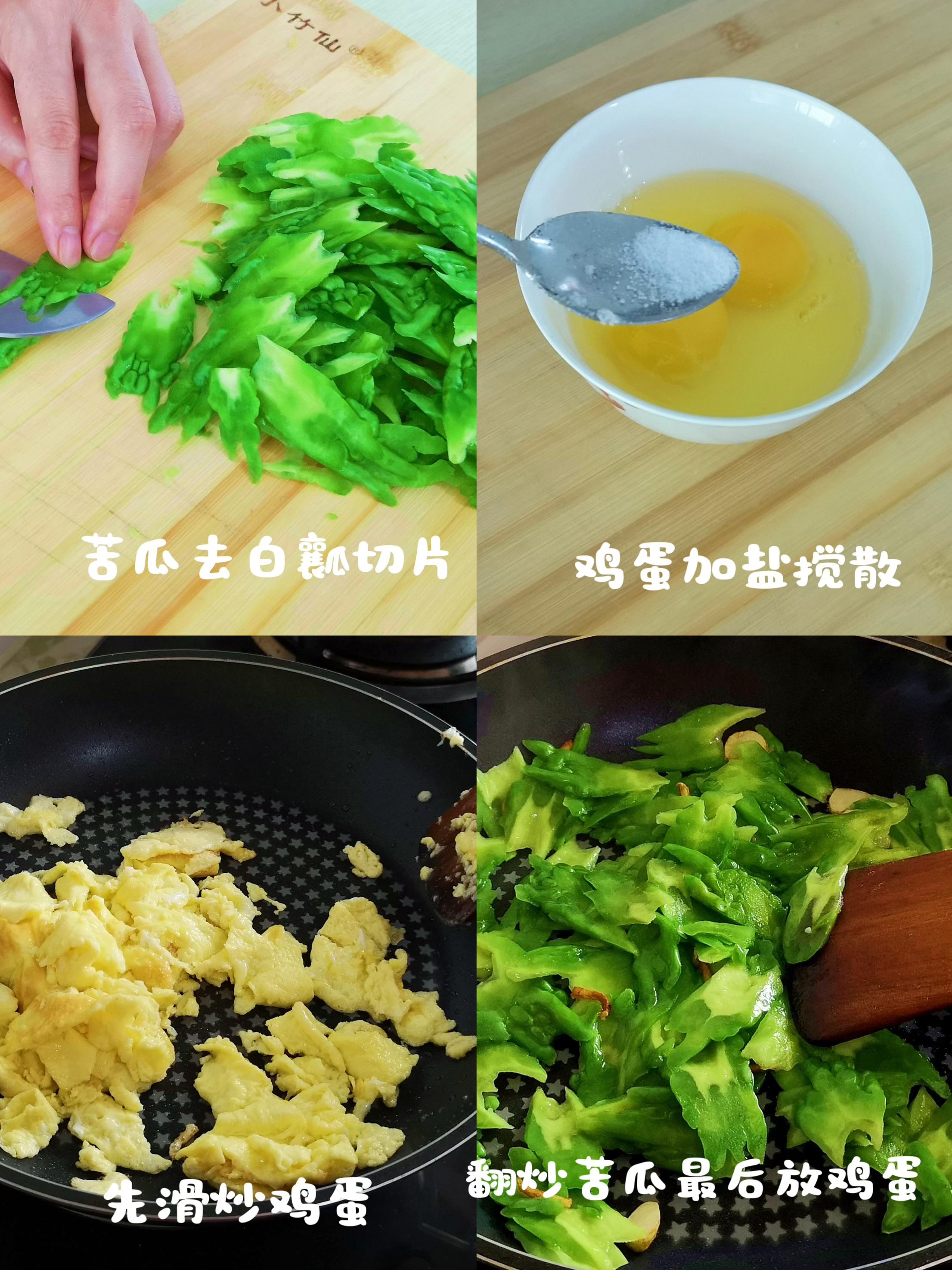 1、苦瓜對半切開,用勺子刮掉裏面的白瓤(怕苦就刮乾淨點),斜切成薄片。去苦小技巧: 切好的片用少許鹽抓醃幾分鐘,擠掉汁水再衝洗;或者快速焯一下水(水裏加點油鹽保持翠綠),都能有效減苦。