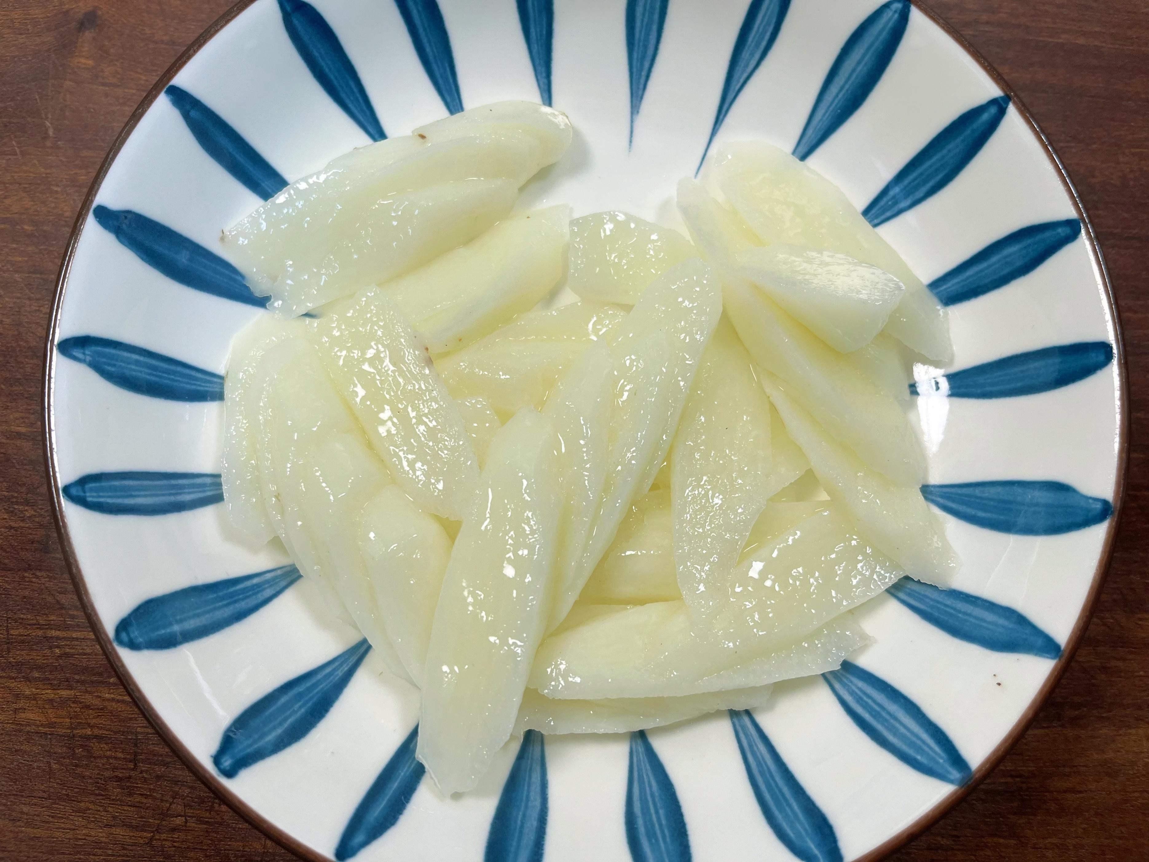 1、山藥削皮(怕癢的記得戴手套或手上抹點醋),切成小段,直接丟進蒸鍋。大火上汽後蒸個5-6分鐘,筷子能輕鬆戳透就行。蒸熟的山藥軟糯香甜,是餅體綿潤的關鍵。蒸着山藥的功夫,咱也別閒着。