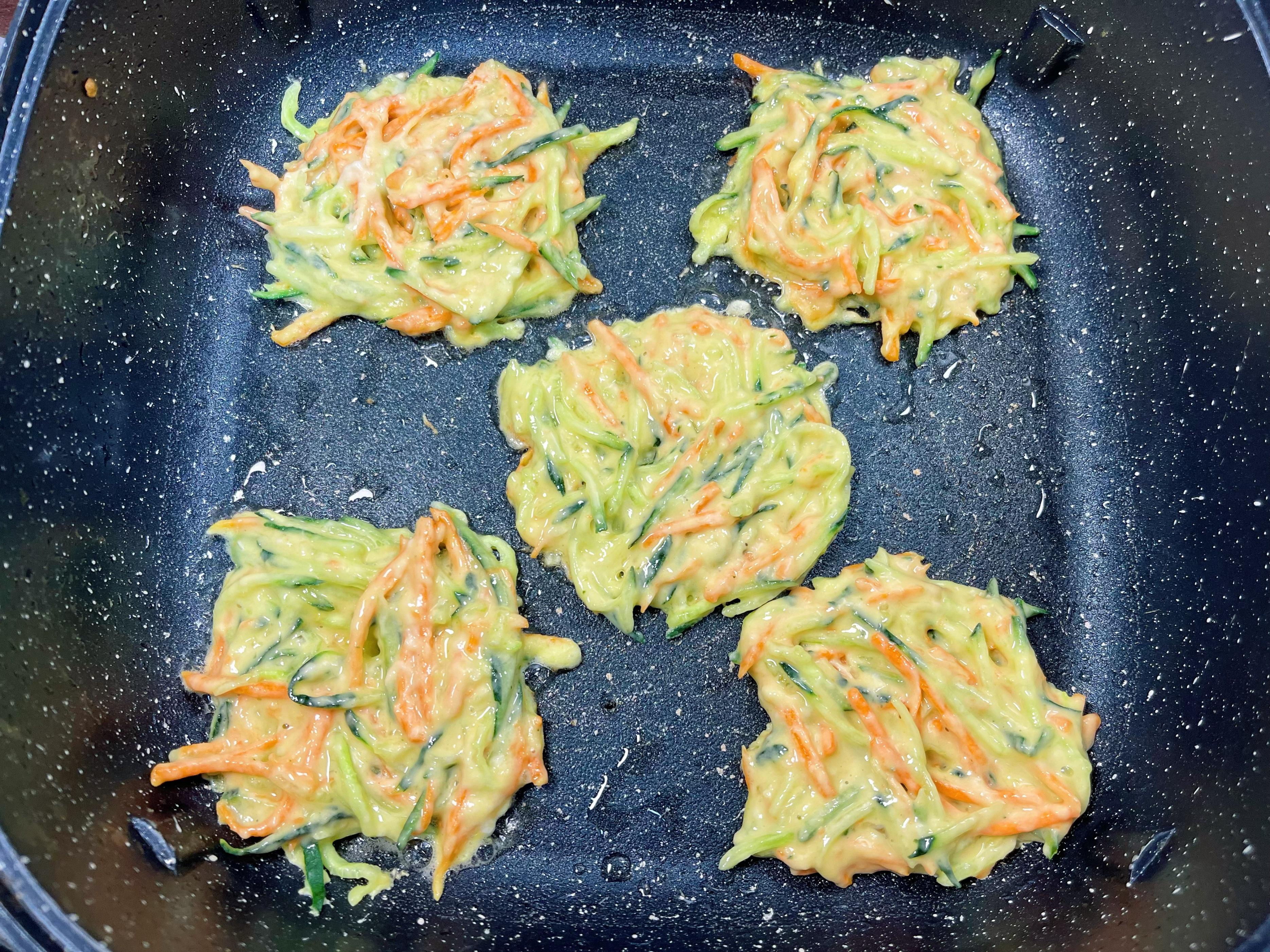 食材:黃瓜、胡蘿蔔、雞蛋:3枚、普通麪粉、鹽、胡椒粉、食用油