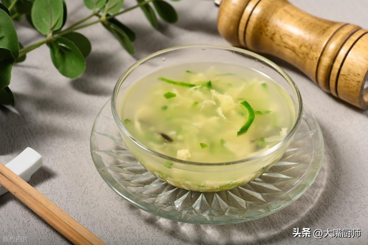 絲瓜蛋花湯湯汁清澈,蛋花如雲朵般輕盈,絲瓜軟糯香甜,喝上一口,暖身又潤燥,彷彿給燥熱的身體帶來了一場清涼的甘霖。