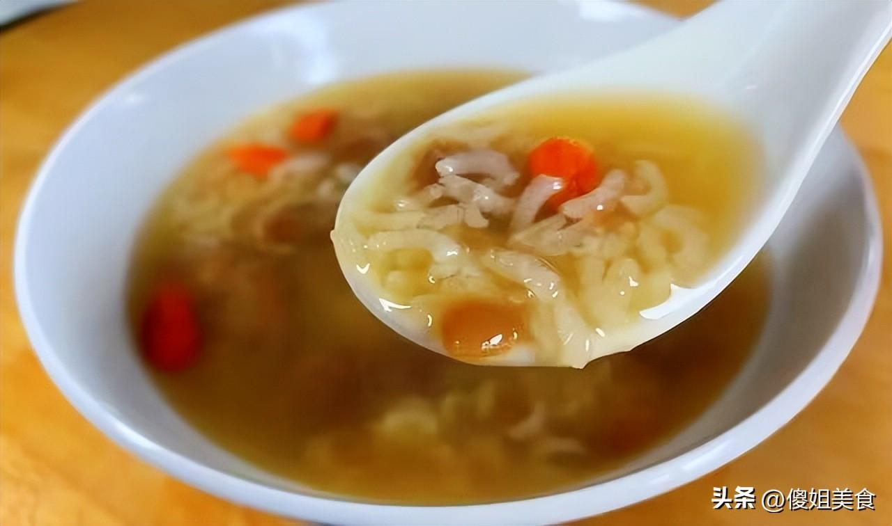最後撒上枸杞,再煮1分鐘,關火!一碗溫潤香甜的湯就搞定啦!睡前一小碗,暖身又舒心。