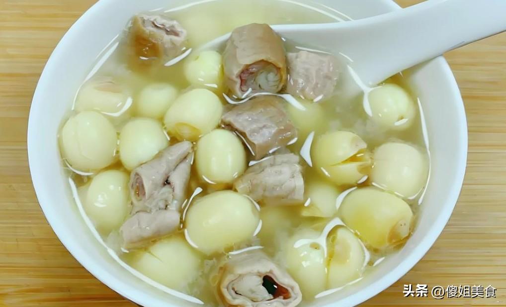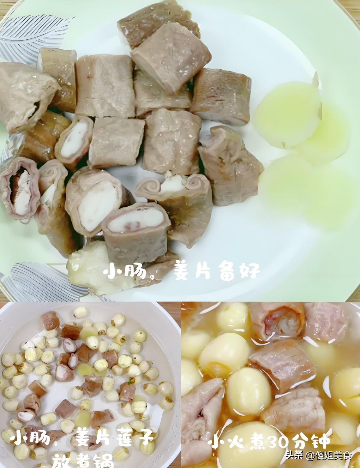 出鍋前加點鹽調味。湯頭清甜不膩,粉糯的蓮子配上軟爛的小腸,一碗下肚,腸胃舒服,人也跟着放鬆下來。