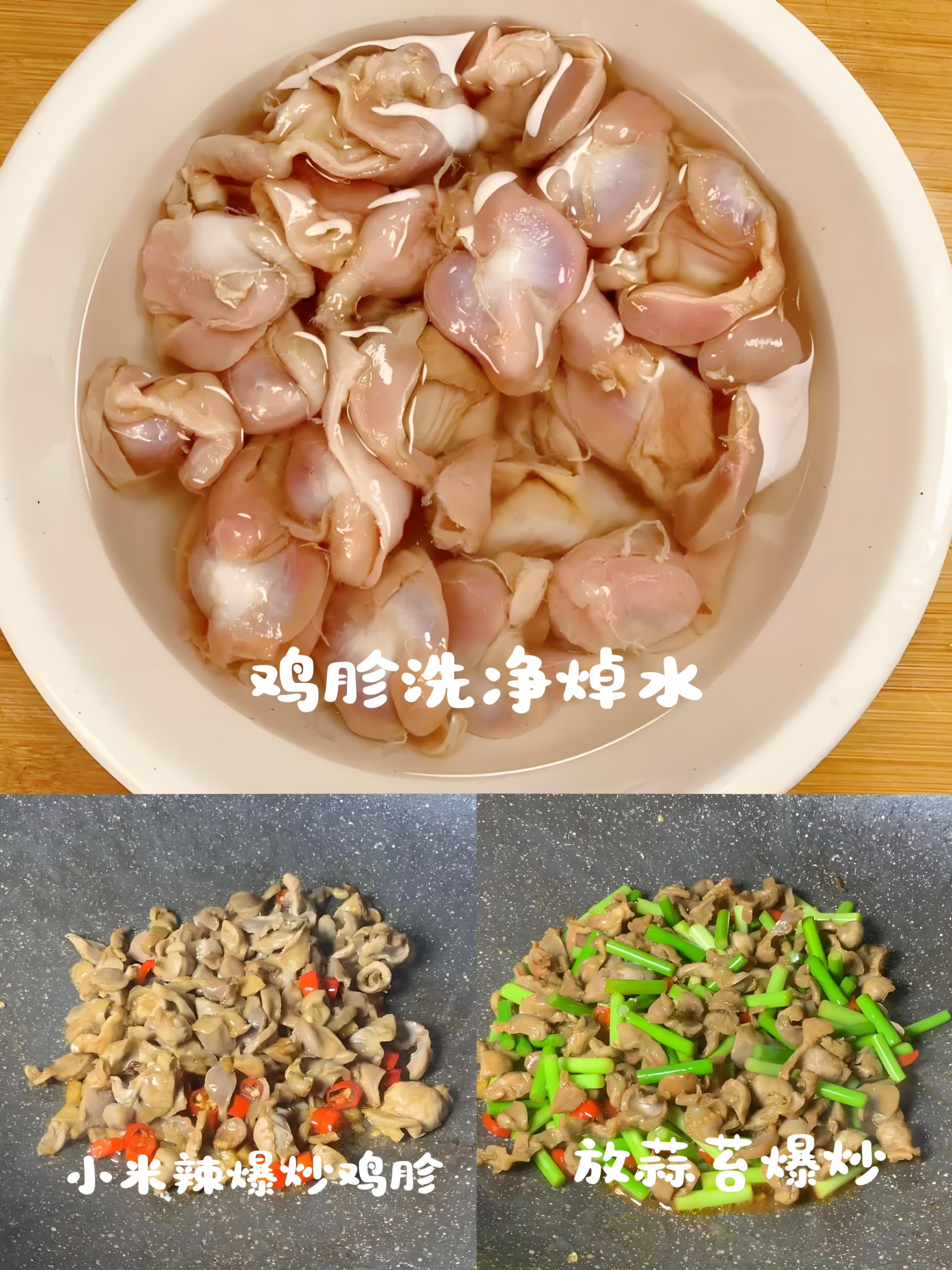 - 食材: 雞胗半斤、蒜薹一把、姜蒜末適量、料酒、生抽、蠔油、鹽、澱粉少許。