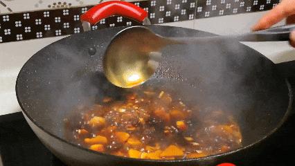 第四步:再來熬個料汁,起鍋加入稍微多一點的花生油,然後放入花椒、八角、香葉、桂皮和幹辣椒,炸香後倒入500克黃豆醬油,再倒入30克白糖,50克鹽、一點味精,大火燒開以後,再淋上一圈高度白酒,然後關火,放涼備用就行啦。