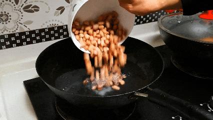 第三步:接着準備適量的花生米,洗淨後倒入鍋中,加入適量的鹽增加底味,大火燒開後繼續煮一會兒,將花生米煮熟後,關火盛出晾涼備用。