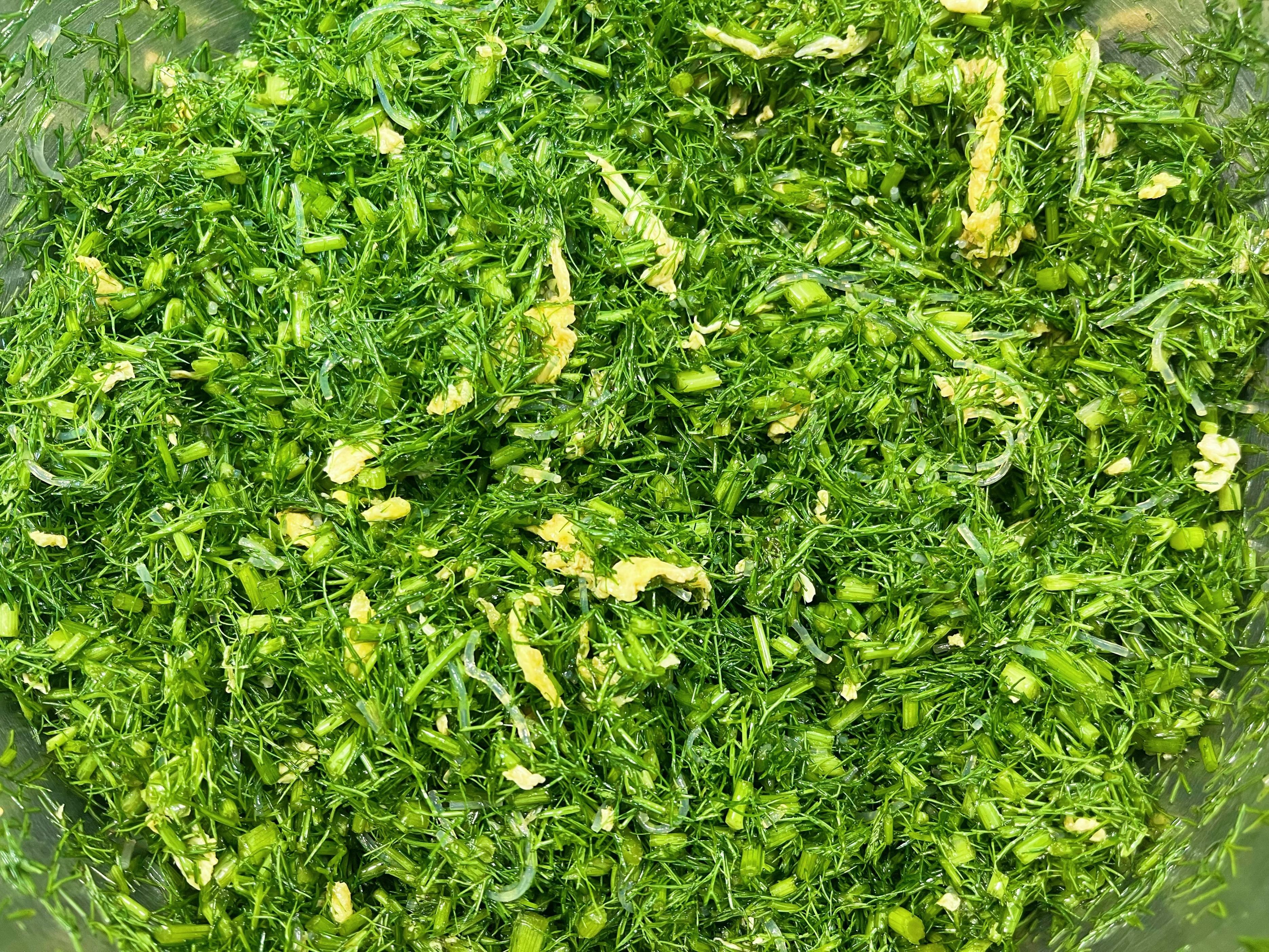 1、茴香摘去老梗,多洗幾遍,把泥沙淘乾淨。撈出來,使勁甩甩水,或者攤開晾晾。切的時候刀要快,切得細碎些,別太使勁擠水,留點兒那鮮勁兒。