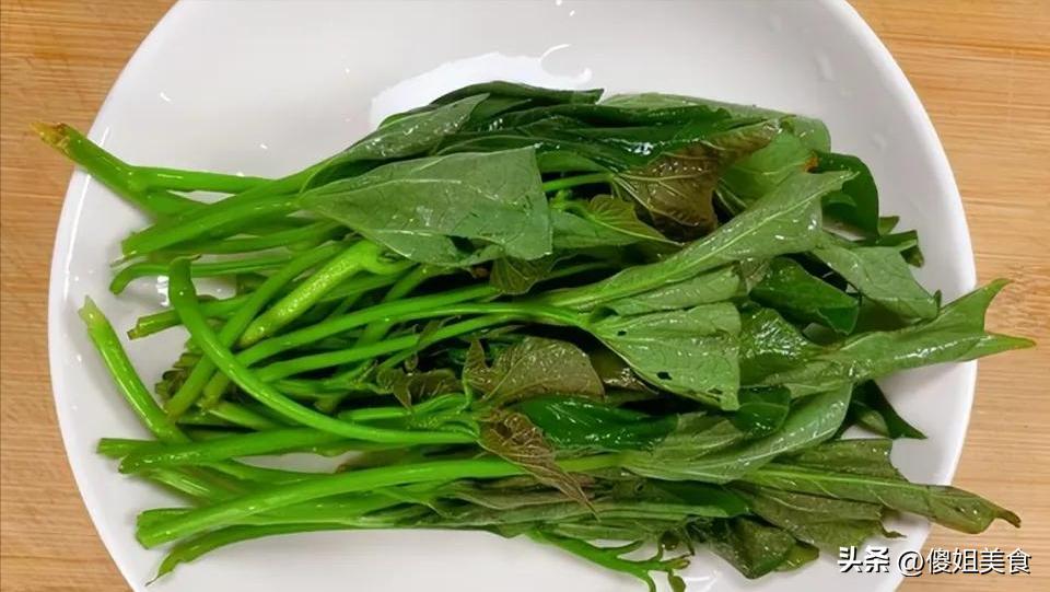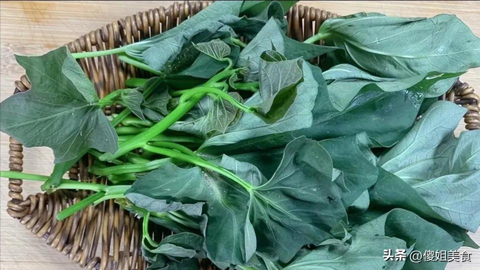 小貼士:紅薯葉一定要選最嫩的尖尖和葉子,老梗口感差。