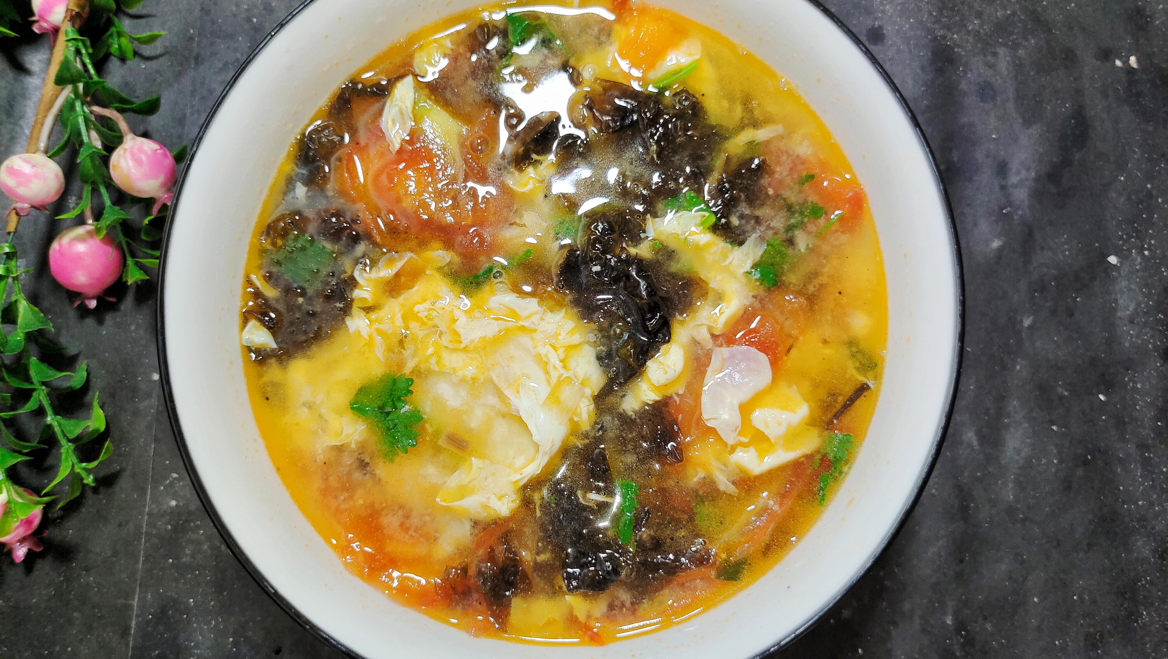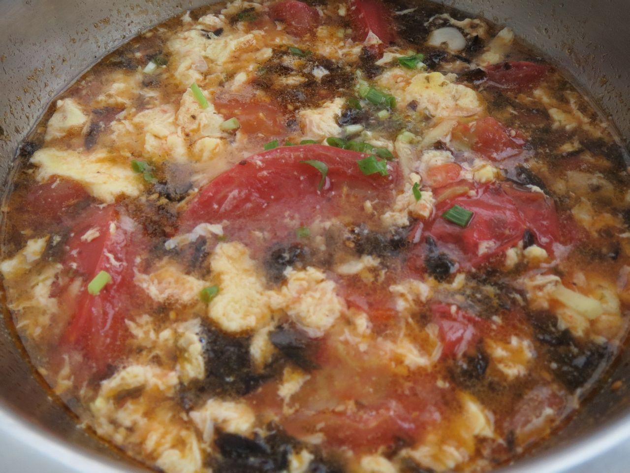 食材;紫菜,西紅柿2個,雞蛋2個, 蝦皮,蔥,鹽, 香油,胡椒粉
