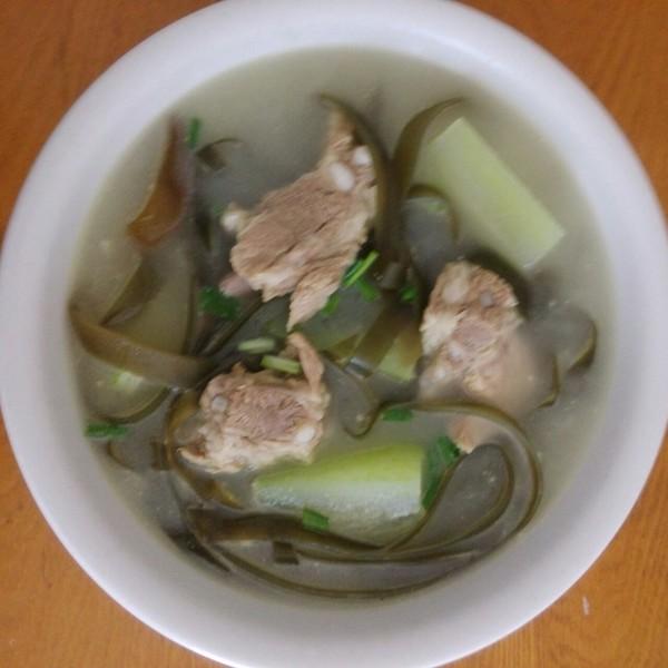 食材:海帶1塊,冬瓜1小塊,排骨1斤,鹽, 胡椒粉, 蔥,姜