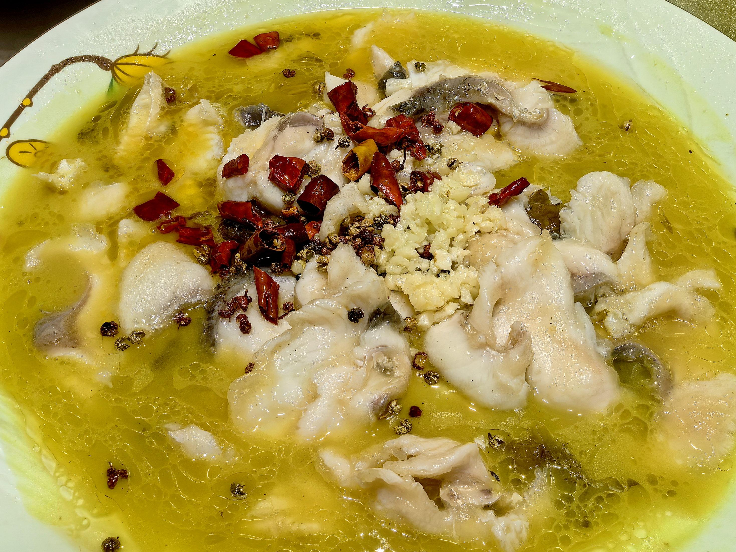 水煮魚紅彤彤一片,看着就豪橫過癮。但懂行的都知道,湯麪上浮着的那一層鮮嫩魚片,實際分量往往沒有視覺衝擊那麼足。一條几斤的活魚,真正片出來能鋪滿湯麪的肉有多少?墊在碗底吸飽了麻辣湯汁的豆芽、青菜纔是主力軍。更別說那看着紅豔誘人的湯底,靠的是大量價格相對低廉的油、辣椒、花椒和各種調味料撐起的濃烈風味。