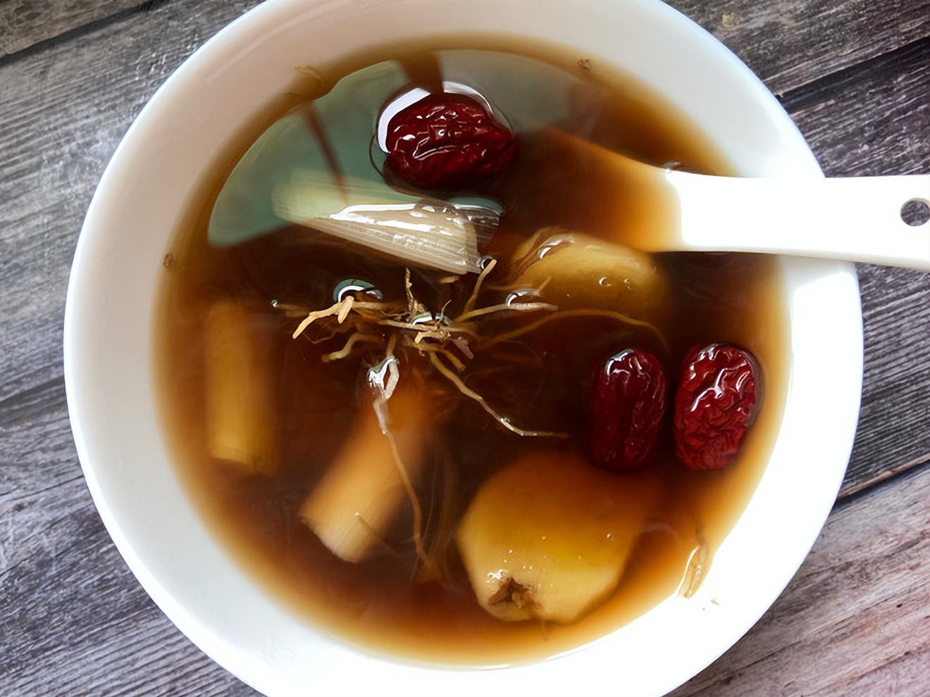4起鍋前,加入紅糖調味即可。趁熱飲用效果好。