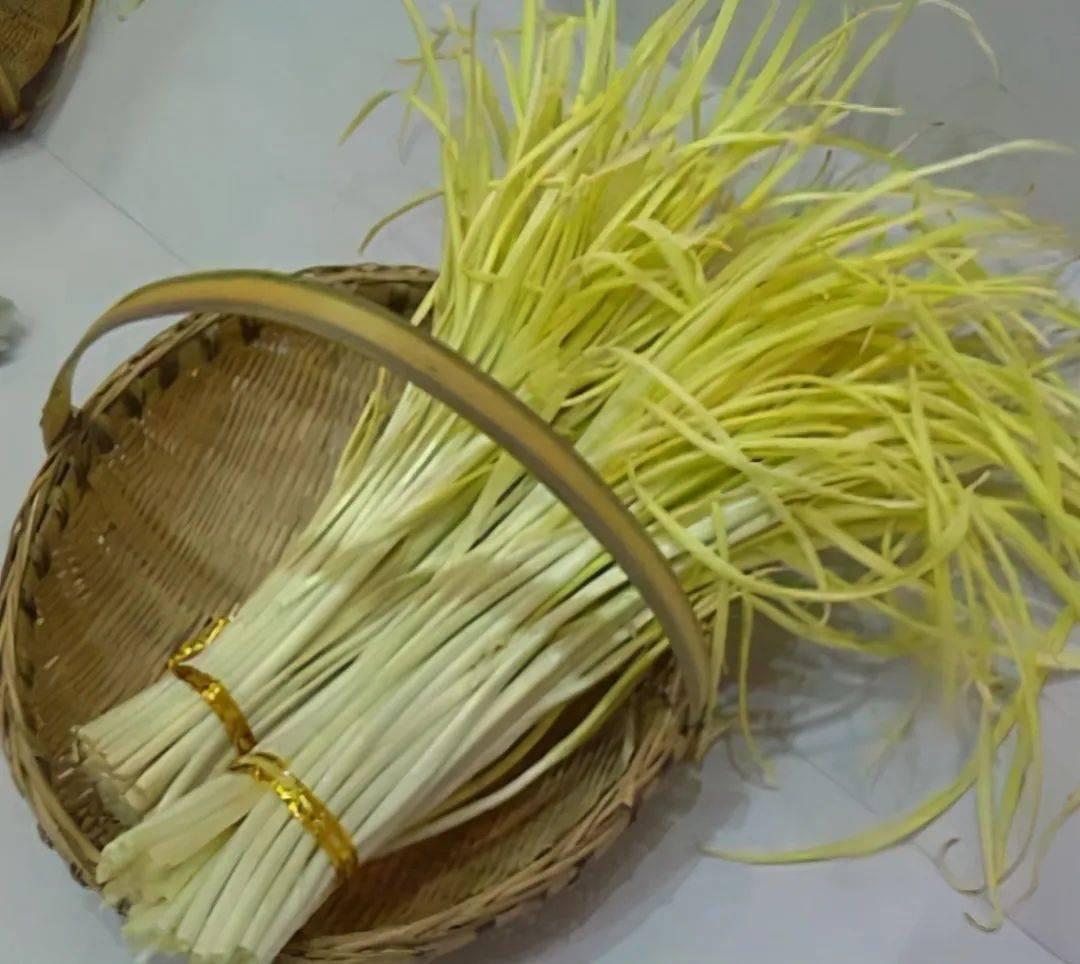 韭黃爲韭菜經軟化栽培變黃的產品,因無陽光供給,不能產生光合作用,合成葉綠素,就會變成黃色,稱之爲“韭黃”。