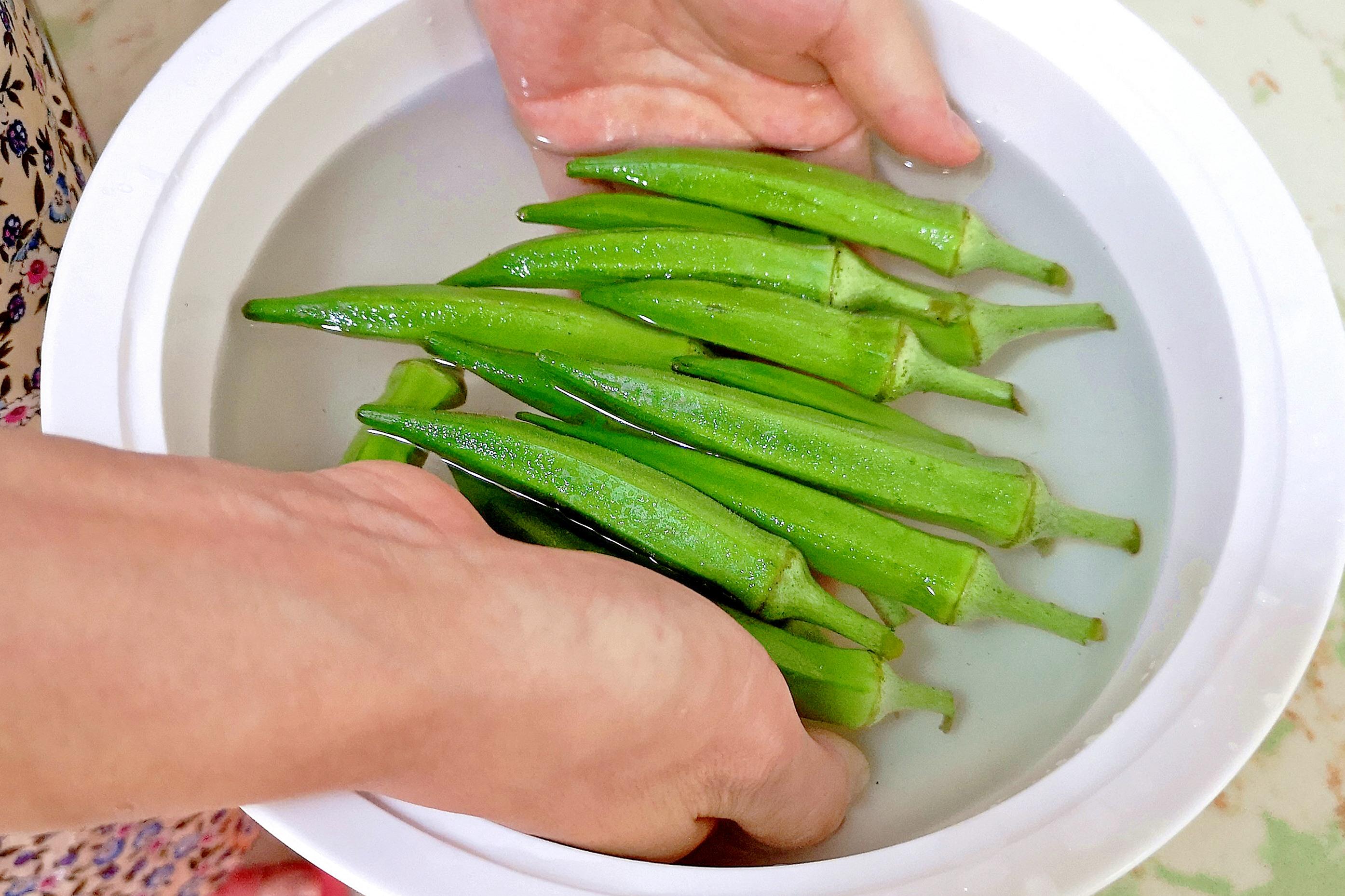 2. 溫柔揉搓:像給秋葵做SPA一樣,用手掌輕輕揉搓表面1-2分鐘。您會感覺到表面那些細小絨毛被搓掉了,黏液開始析出。