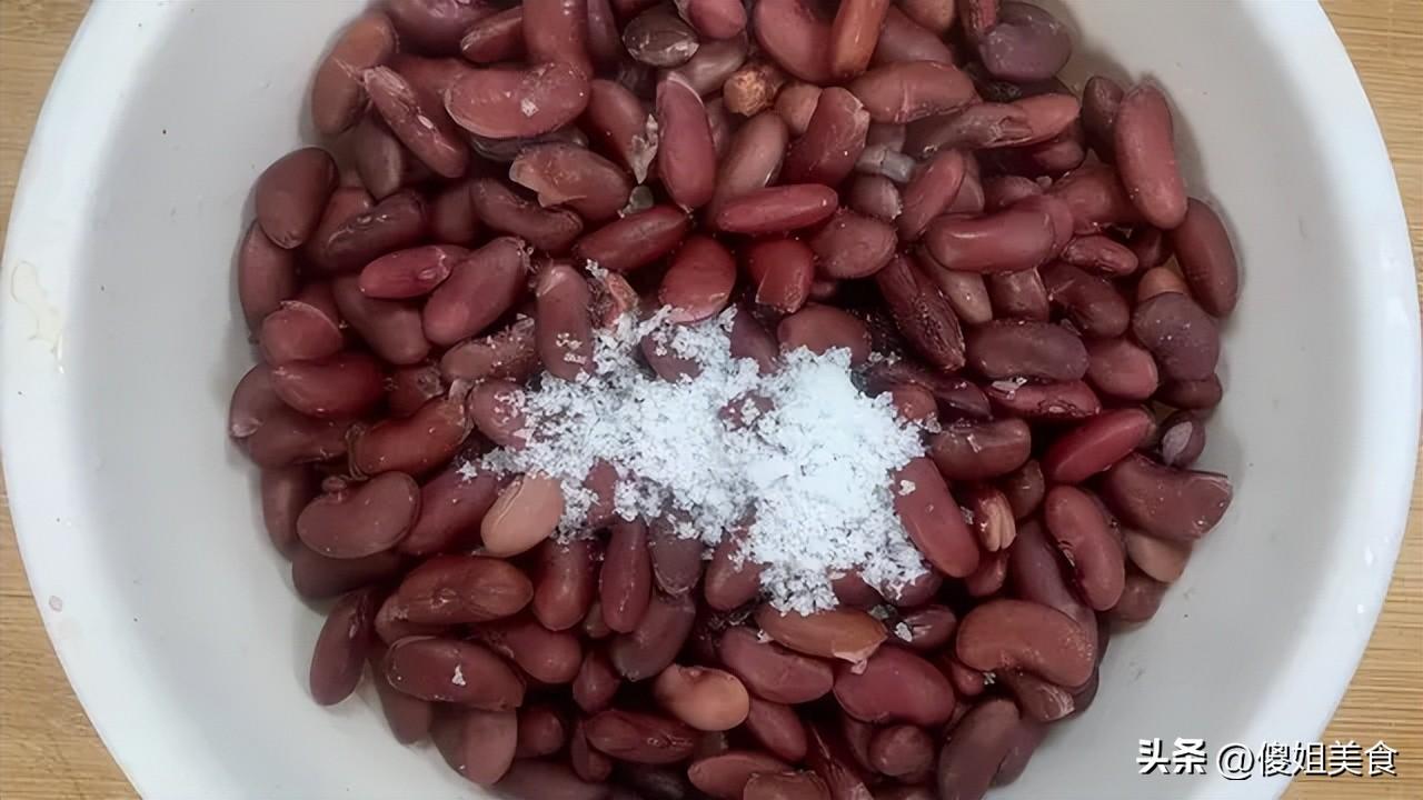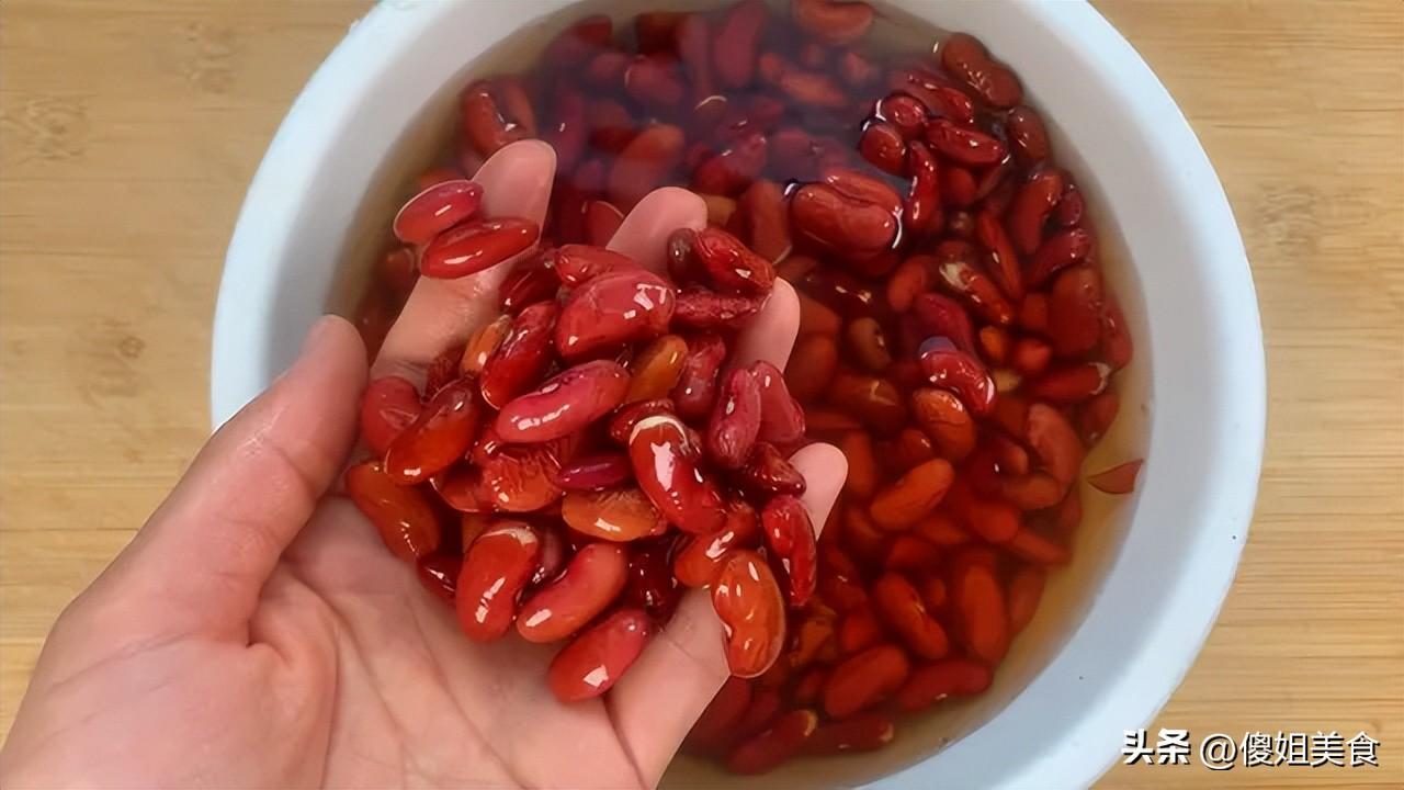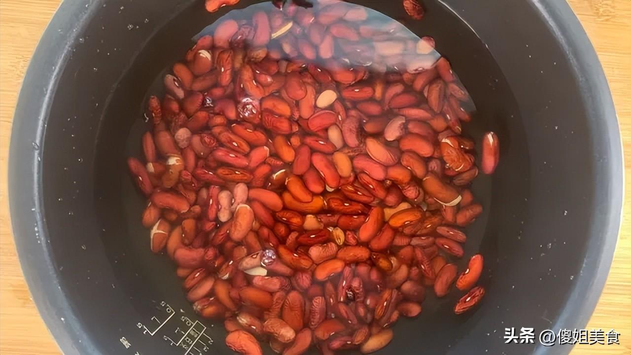 具體做法:1、大紅豆洗乾淨,加足量冷水,至少泡上4小時,最好能泡過夜。看着豆子喝飽水、明顯脹大一圈就對了!這一步省不得,煮出來纔夠軟糯。