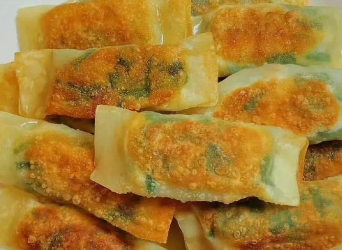 韭菜與雞蛋的經典搭配,做成鍋貼焦香酥脆。用餃子皮就能輕鬆變身美味早餐,一口一個,鮮香在舌尖綻放,喫過就愛上。