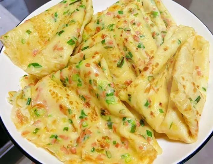 麪粉、雞蛋、火腿與蔥花簡單搭配,香氣瞬間拉滿。製作快捷,蔥香混合蛋香,鹹香適口,一份下肚,能量瞬間加滿。