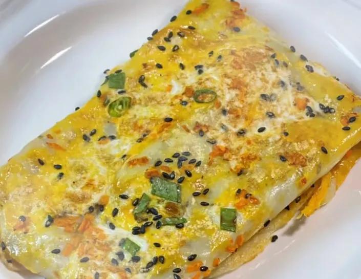 在家就能輕鬆復刻街頭美味,攤好的餅皮裹上豐富內餡,碳水、蔬菜、蛋白質全都有,一口下去超有料,幸福感滿滿。