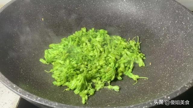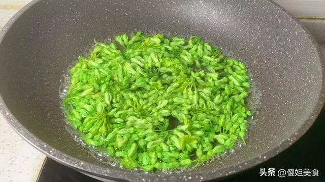 - 撈出後一定要徹底瀝乾水分! 可以用廚房紙巾輕輕吸乾,或者放在瀝水籃裏多晃晃。這是保證炒蛋幹香的關鍵! 溼漉漉的花一下鍋,蛋液就變水汪汪了。