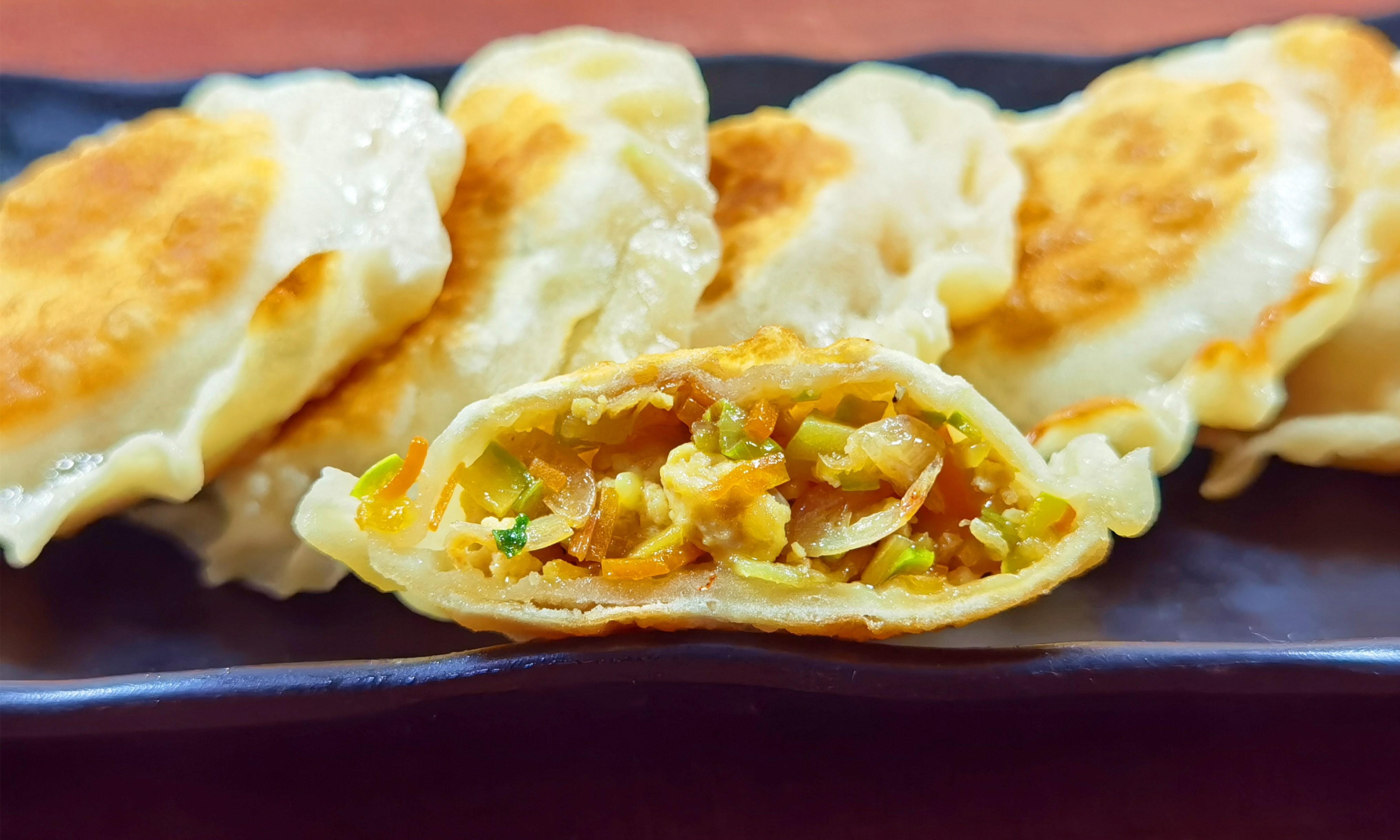 2、捏邊務必捏緊、壓實,否則煎的時候容易“開口笑”。
