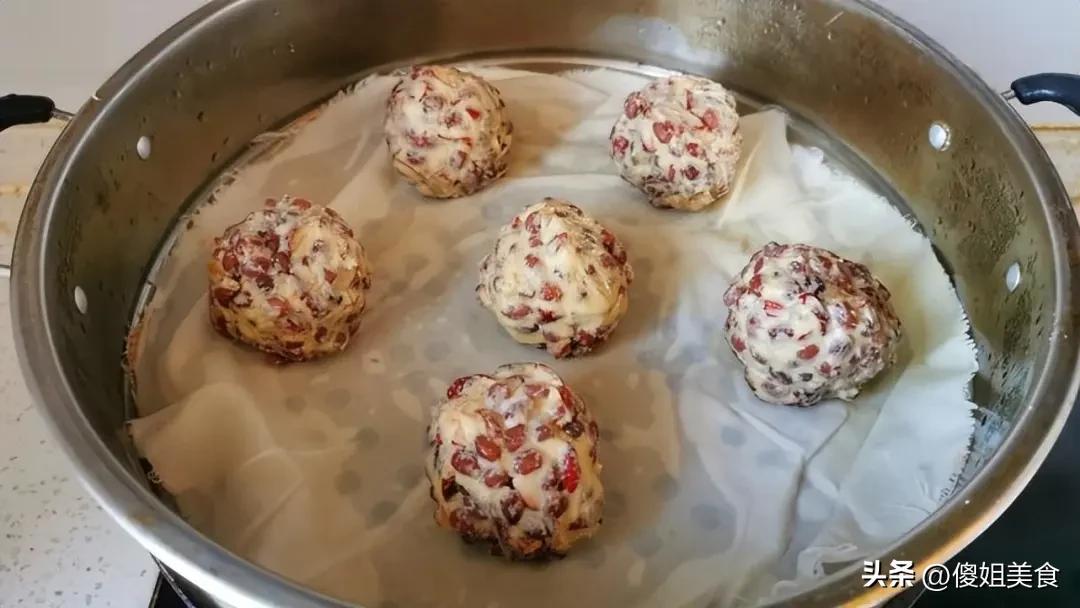 - 蒸出軟糯香: 蒸鍋裏提前燒開水。把捏好的紅豆包生坯間隔着碼放在鋪了蒸籠布或刷了薄油的蒸屜上(防粘)。蓋上蓋子,保持大火,蒸制15-20分鐘即可。時間到了關火,別急着開蓋,讓它在鍋裏再“害羞”地燜個3-5分鐘,這樣豆包更穩定,不會塌陷。