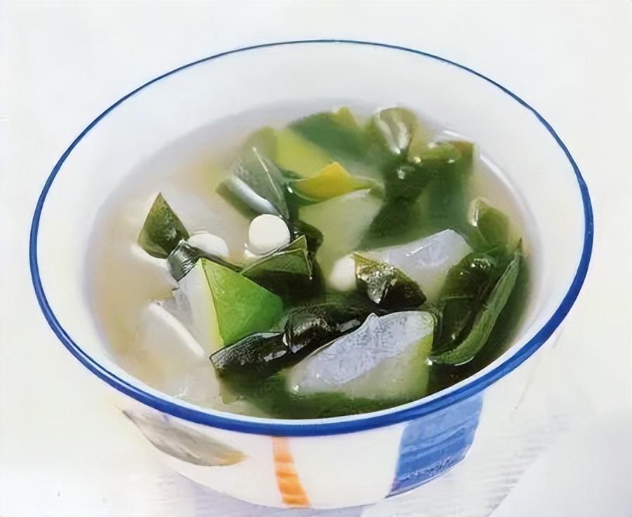 推薦喫冬瓜海帶湯。適當喝它,清熱降火解暑,補水利尿消腫,夏季消暑的佳品。