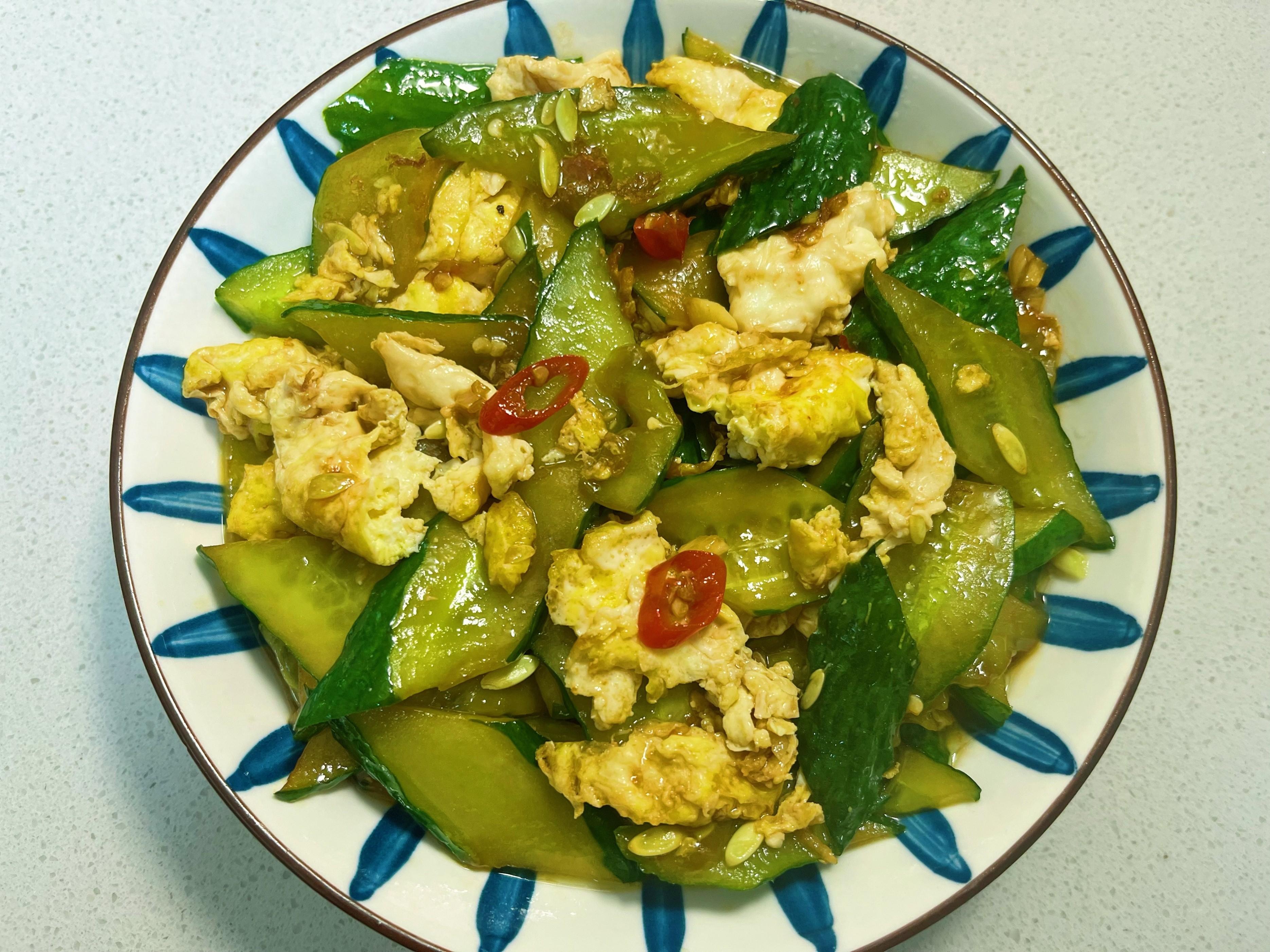 這小暑的黃瓜正當季,水靈得掐得出汁兒,配上金燦燦的雞蛋,看着就清爽。