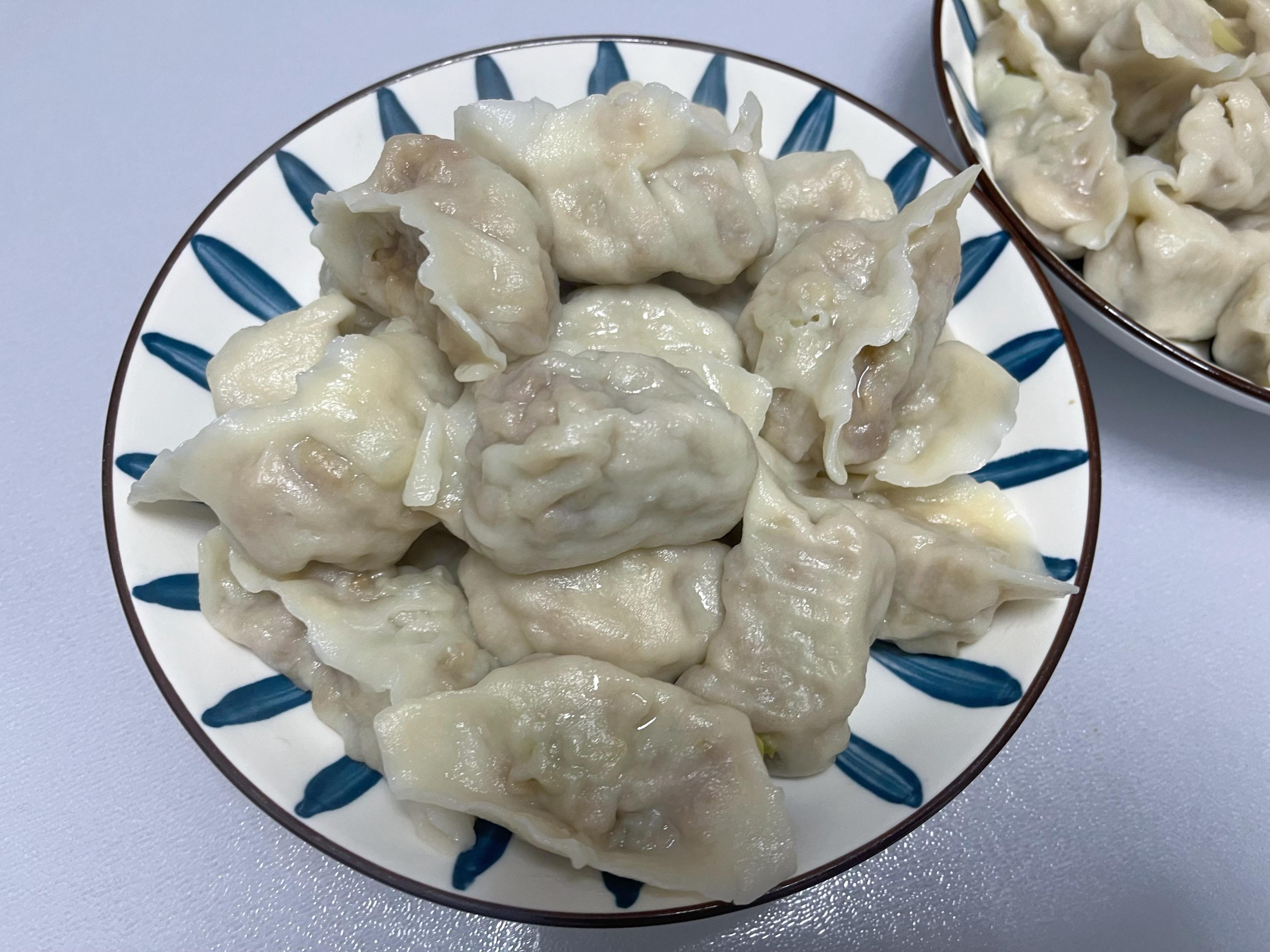4、和麪擀皮兒,包成胖乎乎的餃子,開水下鍋煮到浮起鼓肚就熟。
