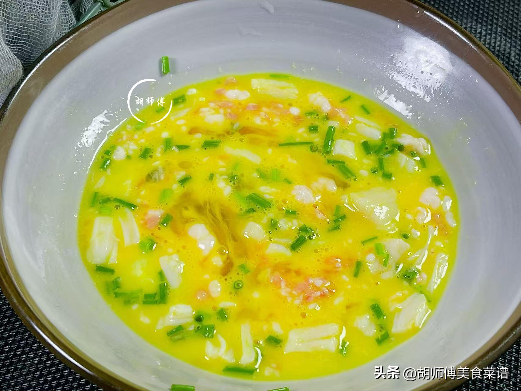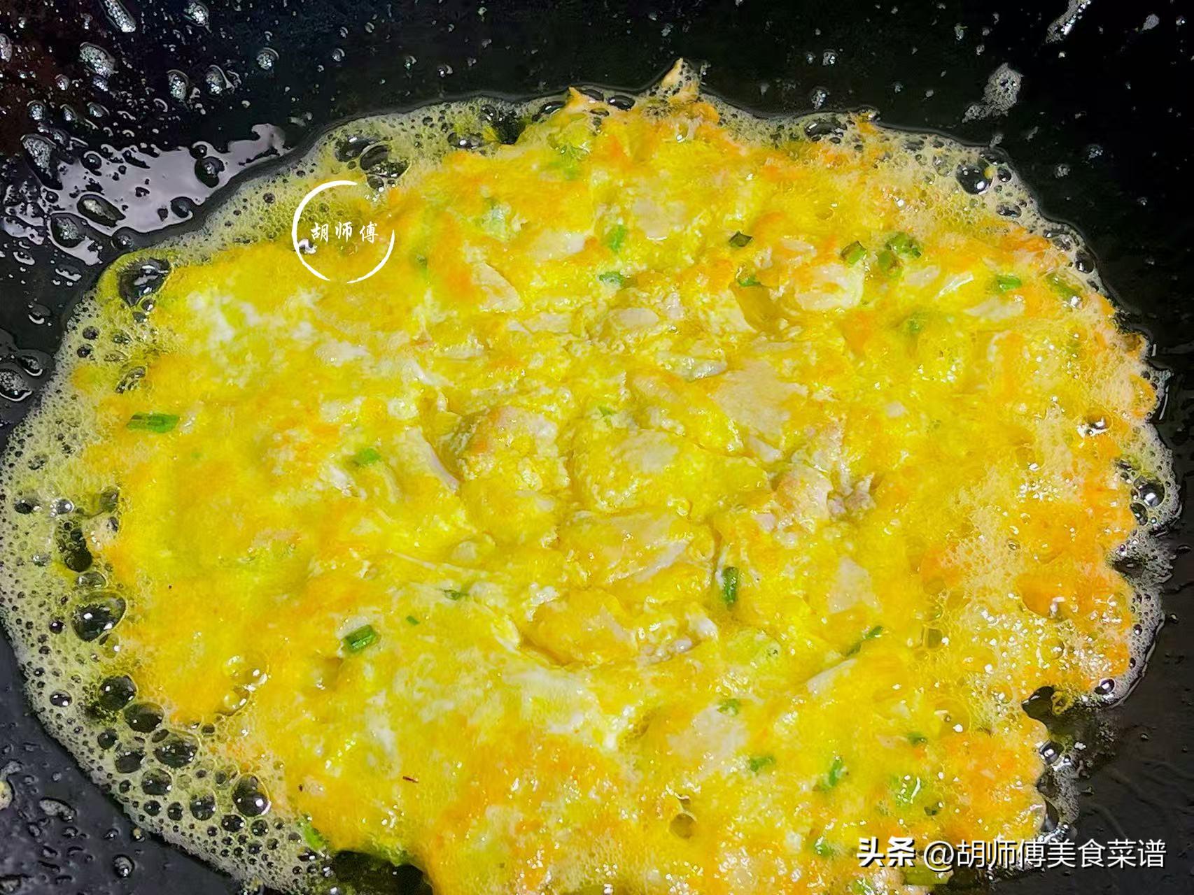 第三步:將鍋燒熱後,放入一勺油到鍋中,等油溫燒到5成熱後,將雞蛋液放入鍋中,大火將雞蛋煎成兩面金黃色即可起鍋食用,做好的乾貝煎蛋一定要趁熱喫,放涼後味道差一大截!