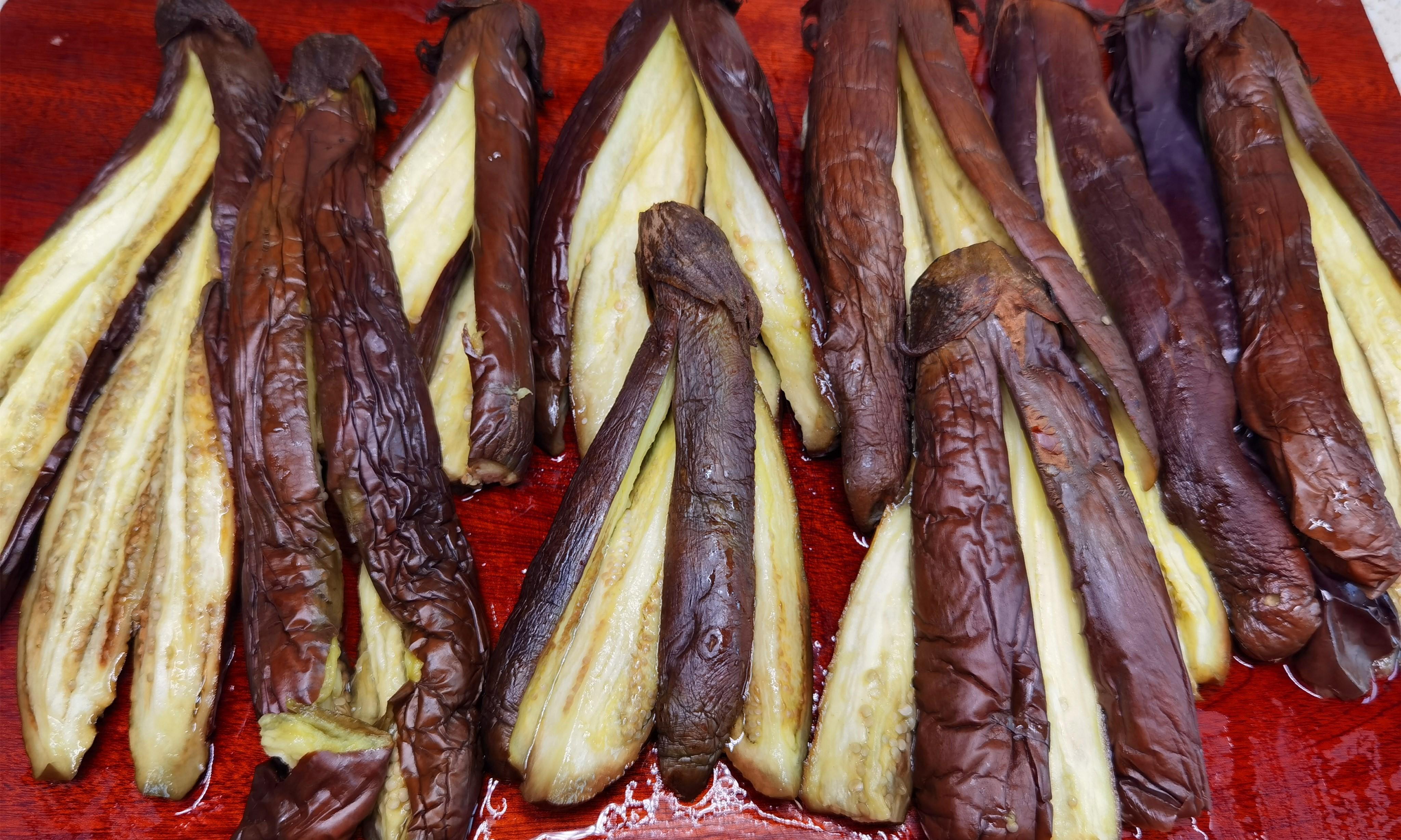 鮮茄子綿軟水嫩,一旦曬乾,竟能凝縮出意想不到的醇厚風味。洗淨後切成厚片或粗條,上鍋蒸個五六分軟,攤開在竹匾上,由着驕陽曝曬。眼看着它從水靈靈的紫色,曬成深褐甚至黑亮的乾片。此時質地已變得柔韌。待到寒冬,抓一把幹茄子用溫水泡開,無論是與紅燒肉一起燉得軟糯入味,還是與辣椒同炒,它那吸味的天賦被完全激發,嚼在口中,是新鮮茄子無法比擬的濃郁深沉。