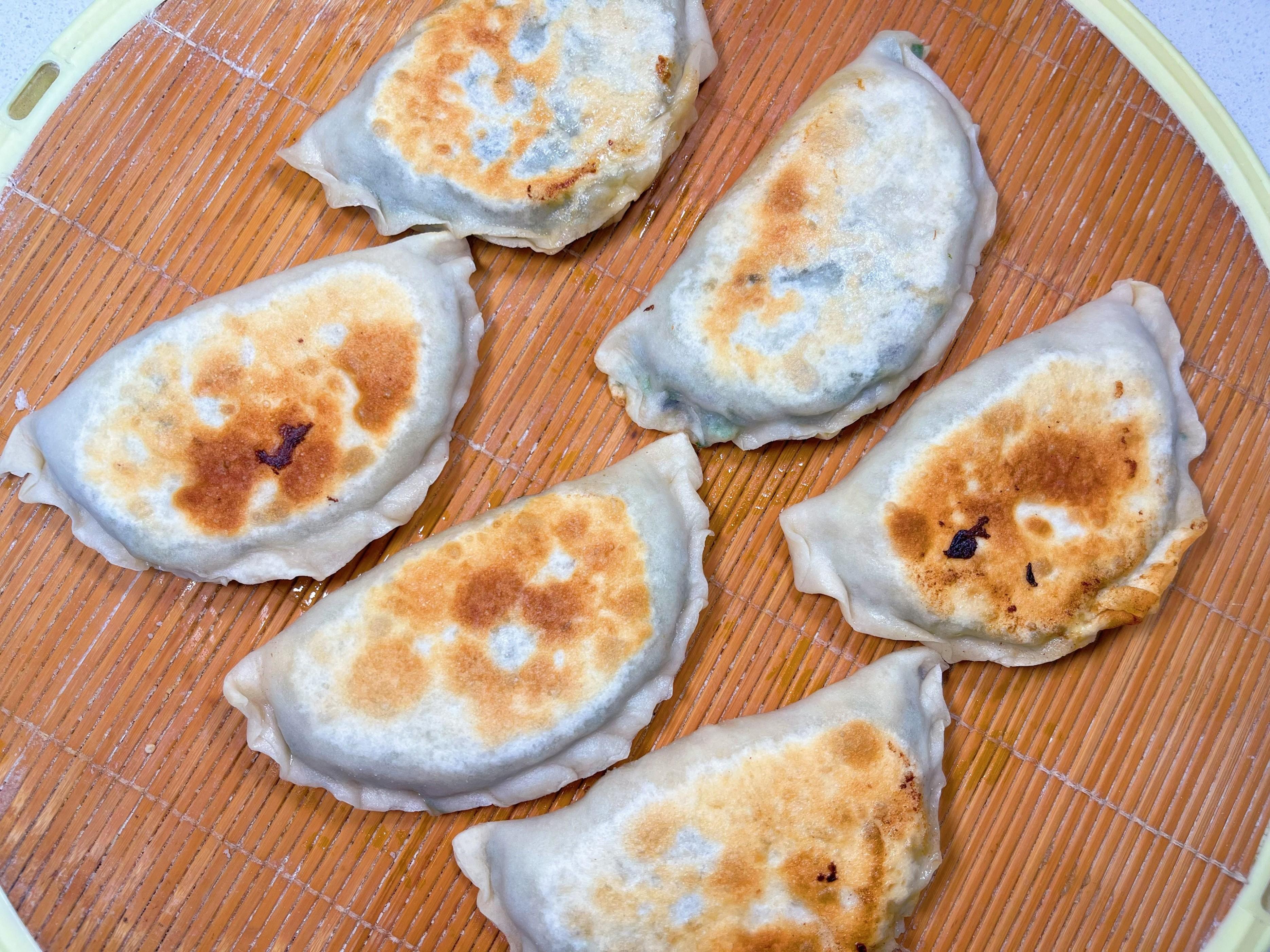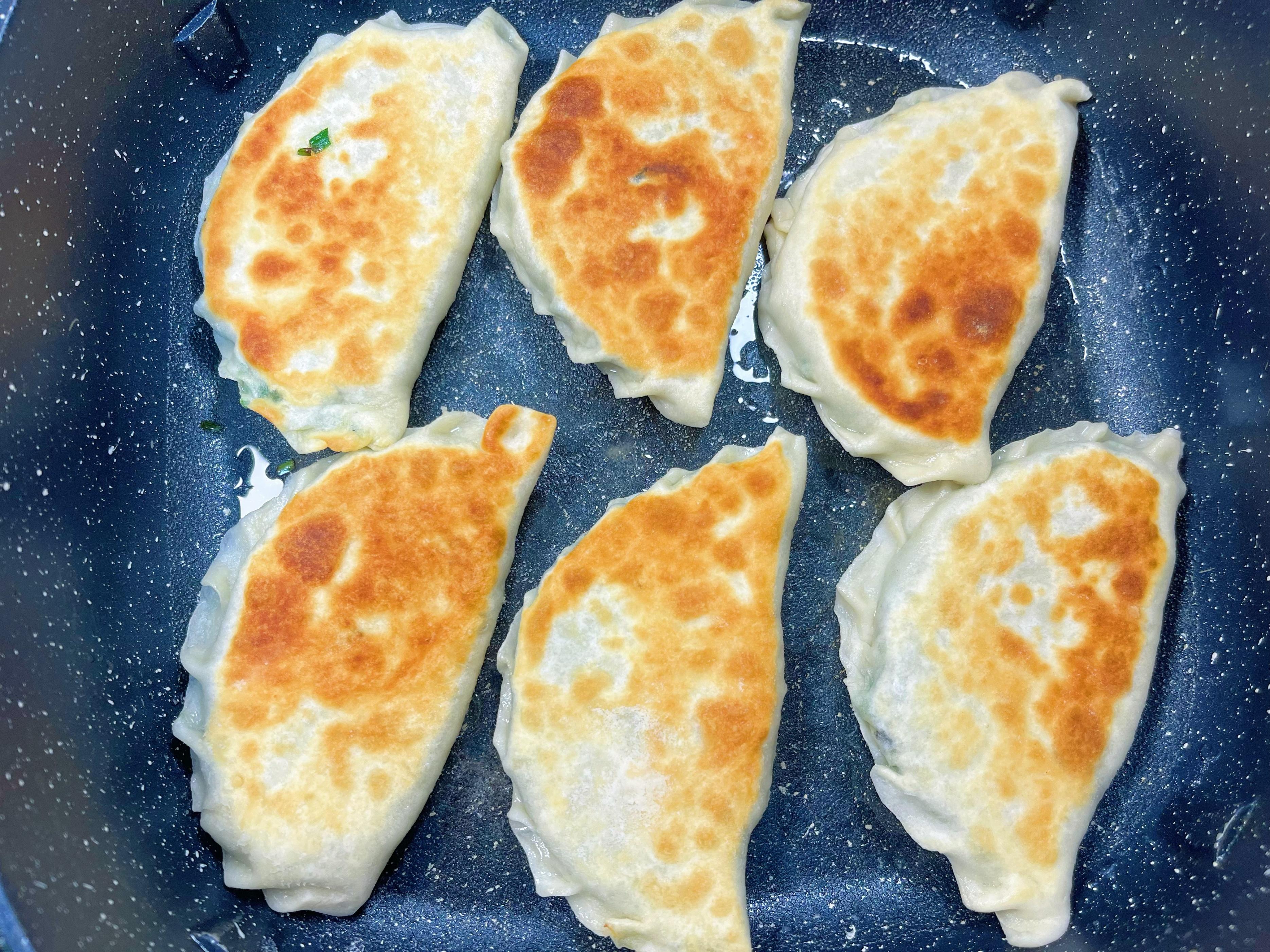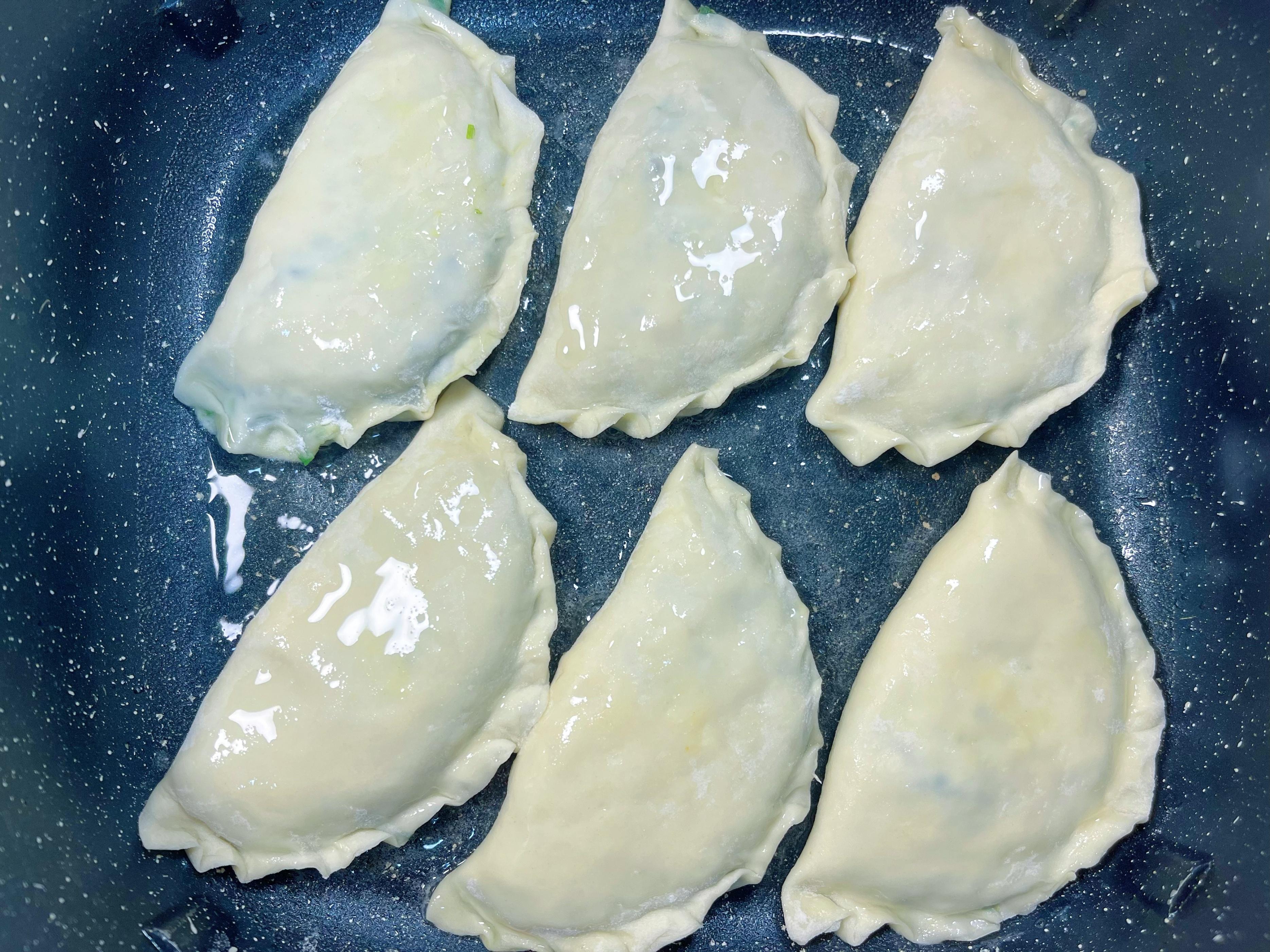 全程保持中小火,蓋鍋蓋燜煎1-2分鐘,利用蒸汽讓內部餡料快速成熟,同時保持麪皮溼潤柔軟。兩面都煎至金黃酥脆,就可以出鍋了。如果擔心餡不熟,可以在煎的過程中沿着鍋邊淋入一小勺清水,迅速蓋上蓋子燜一下,利用蒸汽加速成熟。