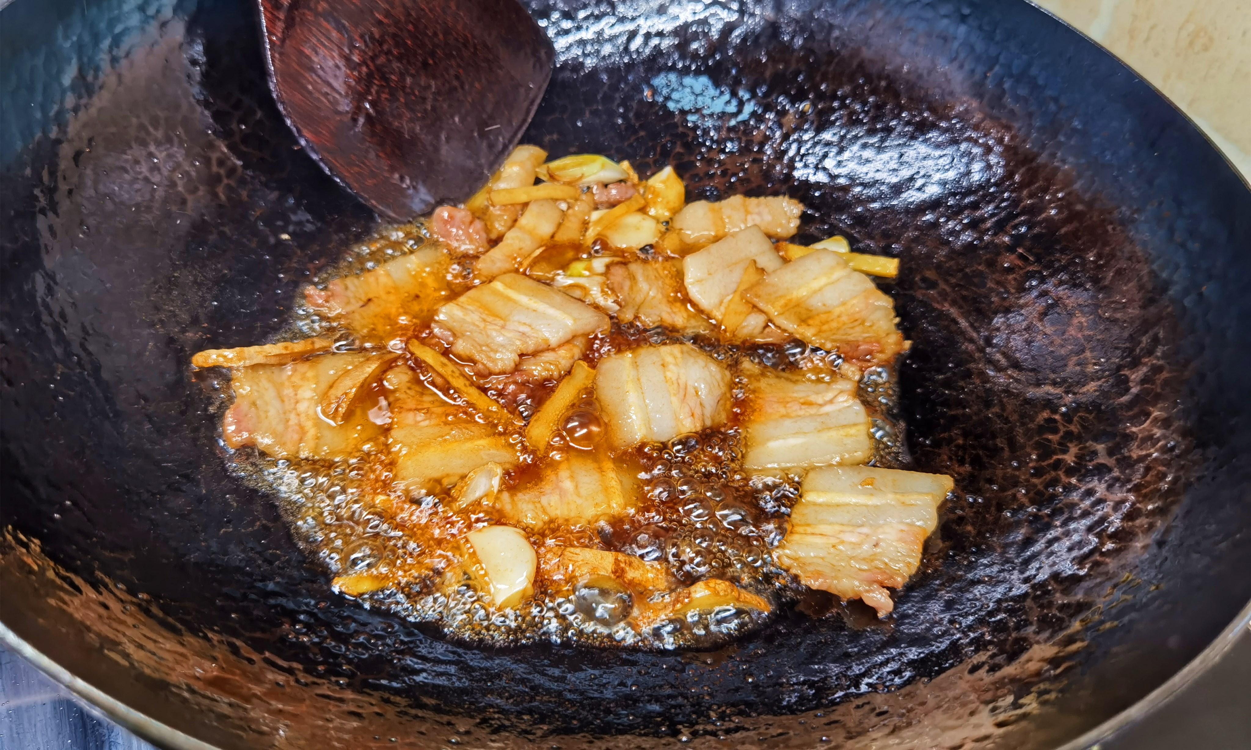 1. 鍋燒熱,倒點油,先下肉片耐心煸炒,把肥肉裏的油香通通“逼”出來。待肉片邊緣帶點焦黃,蔥段、薑片、部分蒜片(留一點生蒜末最後用)立刻入鍋,“滋啦”一聲,香氣瞬間炸開!這時烹入一圈生抽,再加少許老抽調色,肉片瞬間裹上醇厚醬色。