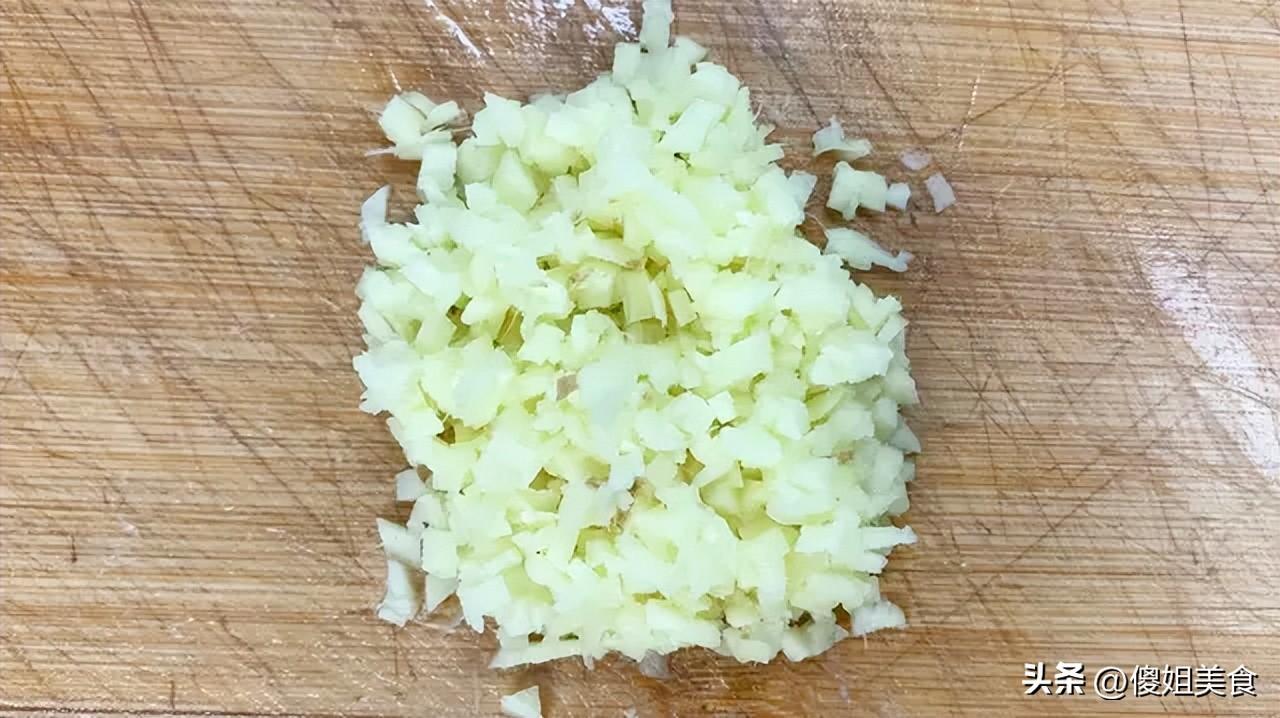 1、老薑洗乾淨去皮,咔咔咔切成碎末末,越細越好,這樣喫着不會硌牙,味道也容易出來。大蒜拍扁,也剁成末末。放一邊備用。