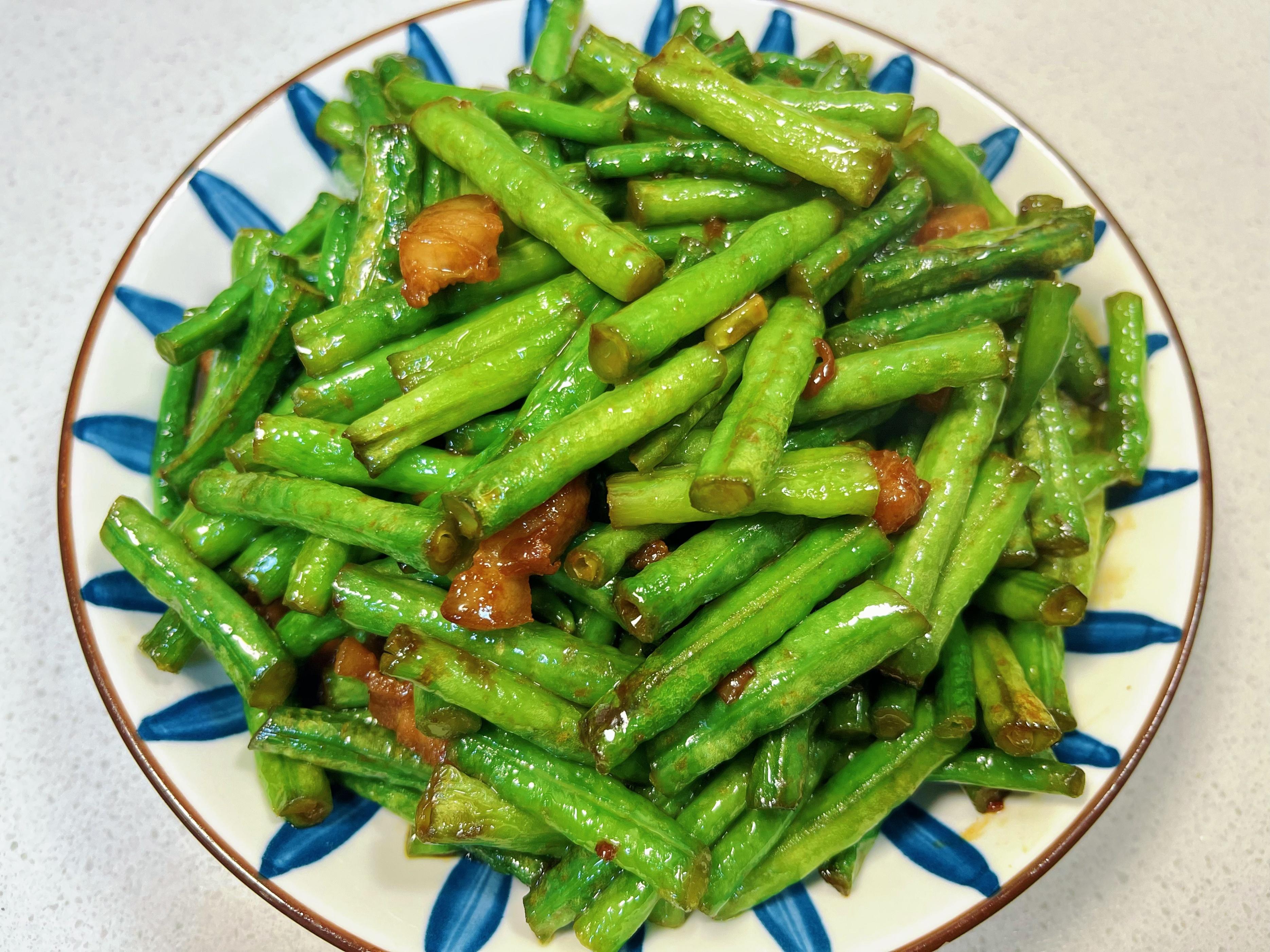 許多人習慣給豆角"焯水",沸水裏滾一滾再撈起。此法固然能去生澀,可那滾燙的熱水,也捲走了豆角里嬌貴的維生素C和葉綠素,更讓那脆生生的口感變得軟爛無力,碧綠的顏色也像蒙了塵。至於"直接下鍋炒"的莽撞派呢?豆角性子倔,非得在鍋裏磨蹭許久才肯熟透,等到它軟了,肉片早已在漫長煎熬中老如柴禾,鍋裏也焦糊一片。這雙重打擊,簡直是對好食材的辜負!