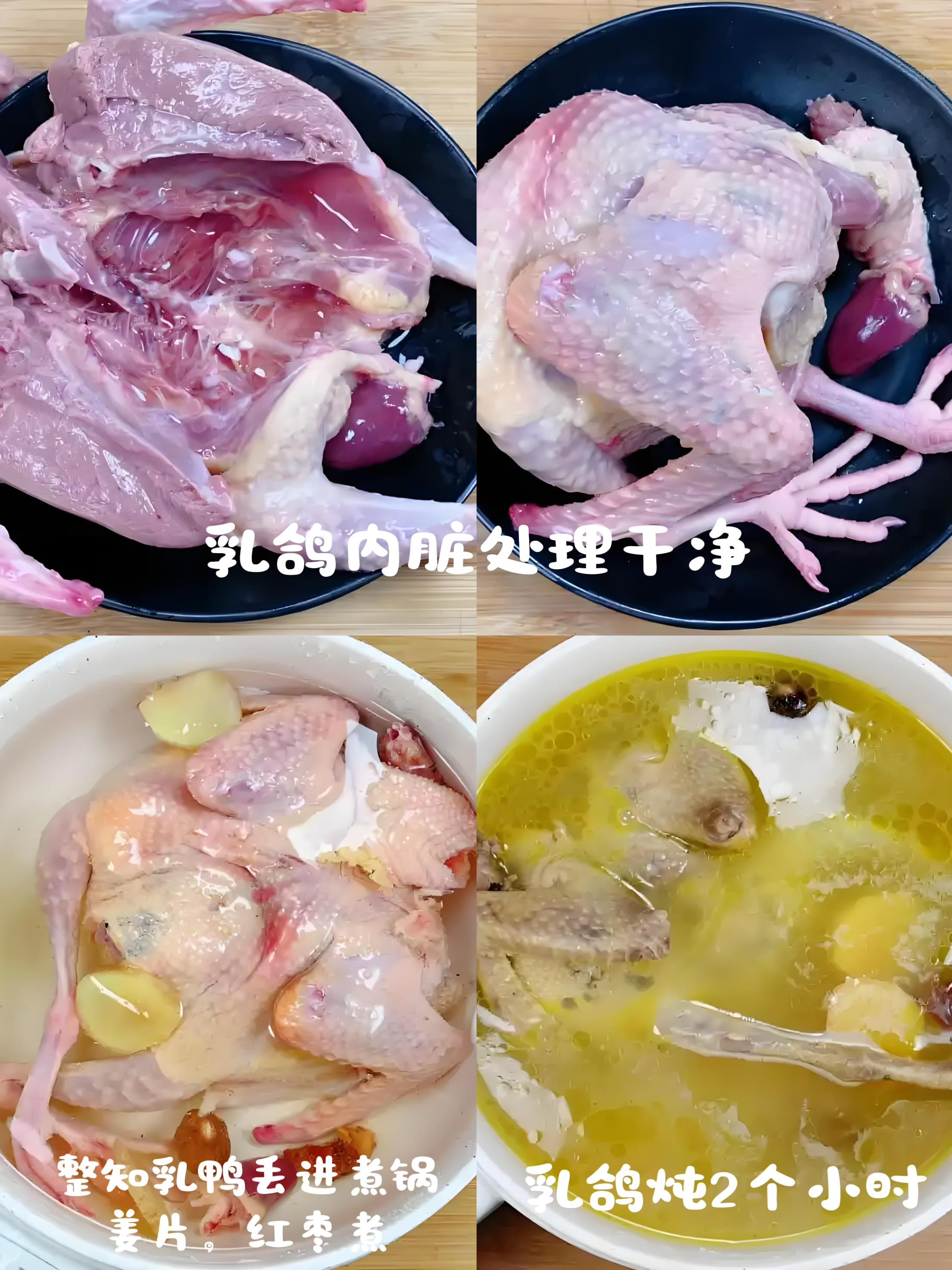 1、乳鴿處理乾淨(可請攤主宰好),斬成幾大塊。冷水下鍋,加薑片、少許料酒焯水,煮沸2分鐘後撈出沖洗乾淨。