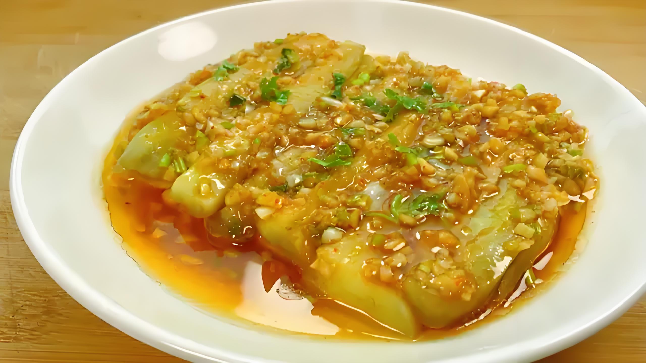 3、時間一到,立馬關火,迅速掀蓋。哇!看這茄子,色澤鮮亮水潤潤,筷子一碰軟嫩卻不散架。小心地倒進盤子裏。最過癮的一步來了——調個靈魂料汁淋上去! 經典搭配是:蒜末(多多益善!)+ 生抽(提鮮)+ 香醋(增爽)+ 幾滴香油(畫龍點睛),愛喫辣的丟點小米椒圈或者淋勺辣椒油。講究點的,燒一小勺熱油,“滋啦”一聲潑在蒜末上,香氣瞬間炸開!最後撒點小蔥花或香菜末,齊活!