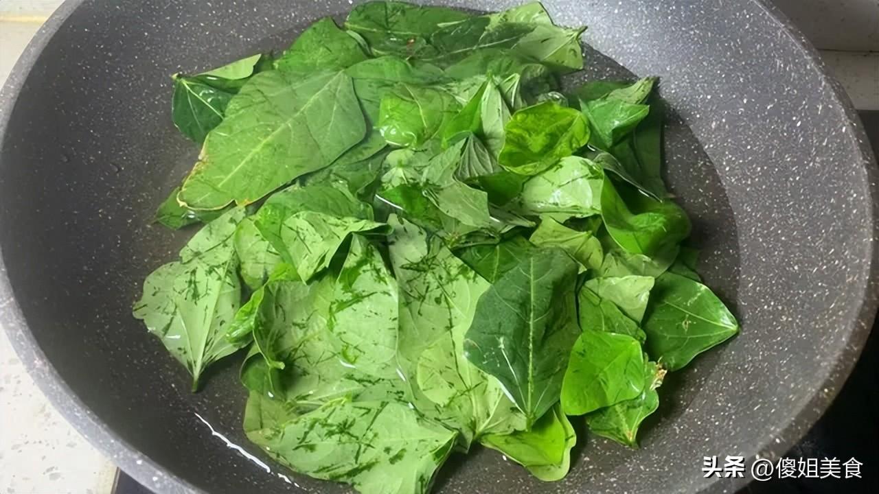 豆角葉洗淨後,需要稍微處理一下。別怕麻煩!把葉片從中間那條硬硬的主葉脈上撕下來(只留嫩葉部分),粗梗子不要。燒一大鍋水,水開後加一小撮鹽和幾滴油(能讓葉子保持翠綠),把處理好的豆角葉倒進去,快速焯燙大約20-30秒。看到葉子變軟、顏色更綠了就立刻撈出來!千萬別燙久了,否則葉子軟塌塌的沒口感。撈出來馬上過一下涼水(或者用冷水衝透),然後使勁兒攥幹水分!攥得越幹,炒出來越香,不會水唧唧的。攥幹後稍微切幾刀,不用太碎。