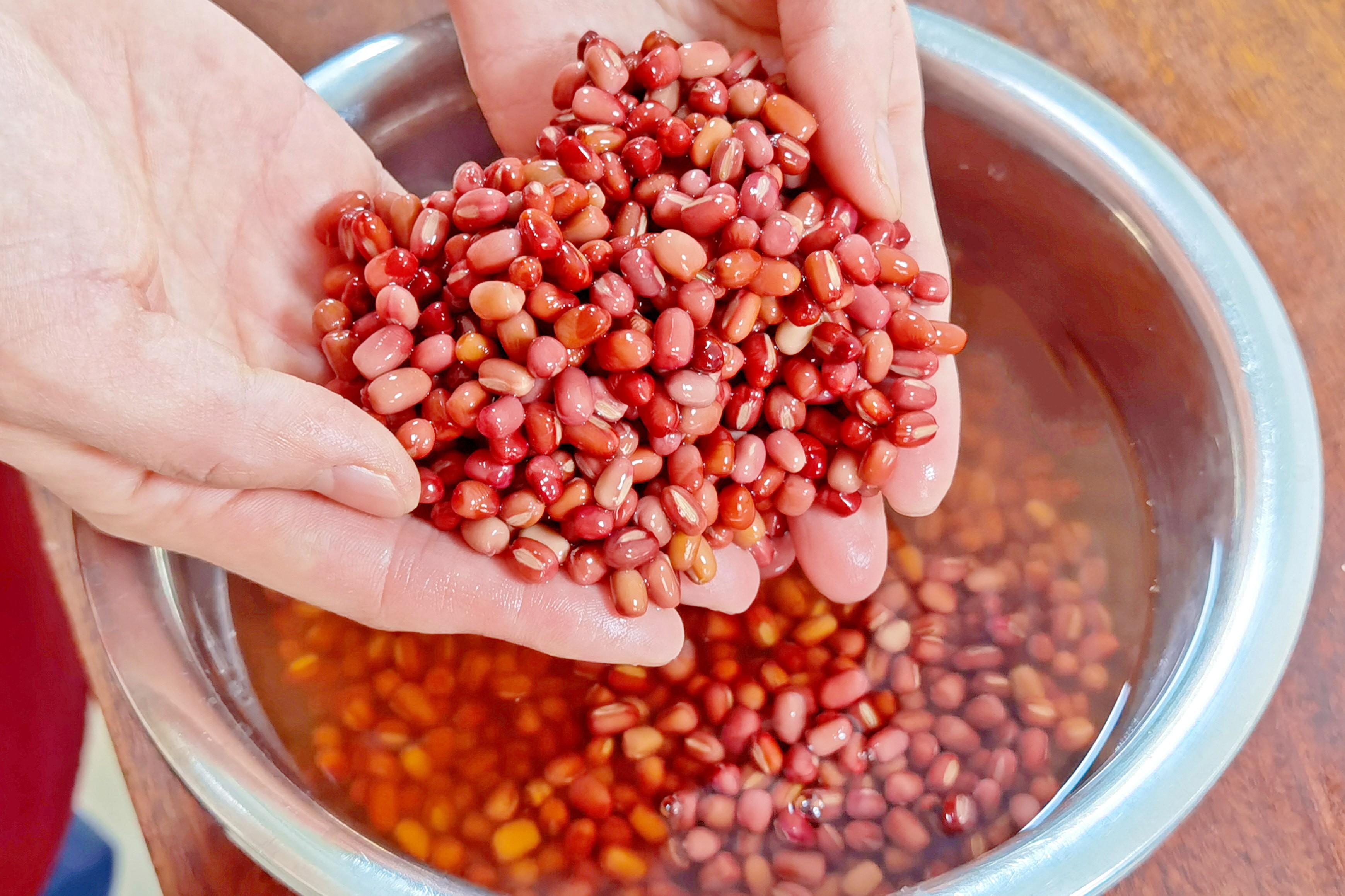 1、取一碗飽滿新鮮的紅小豆,清水淘洗兩遍,沖掉浮塵。洗好後,無需像傳統方法那樣瀝得乾乾爽爽,關鍵是要讓豆子表面保留一點溼潤的水分。這層薄薄的水衣,正是後續魔法發生的介質。