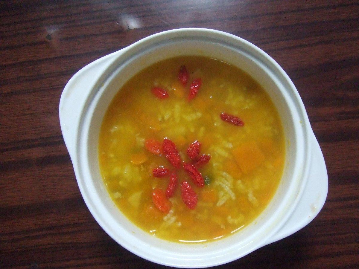 5食材煮爛即可,加入枸杞,鹽, 胡椒粉, 蔥花即可。