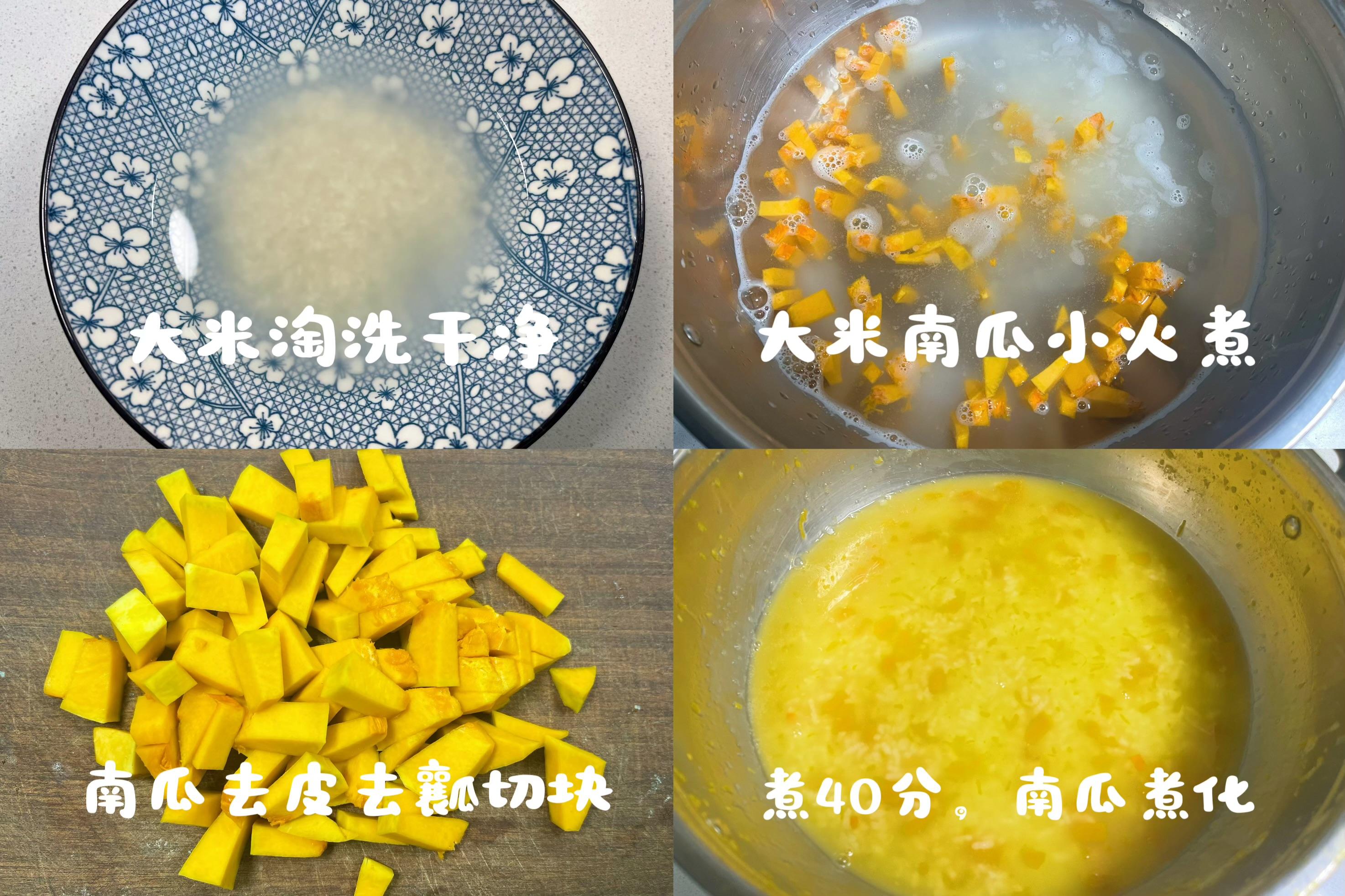 1、南瓜去皮去籽,切成小丁(易熟)。大米淘洗乾淨。