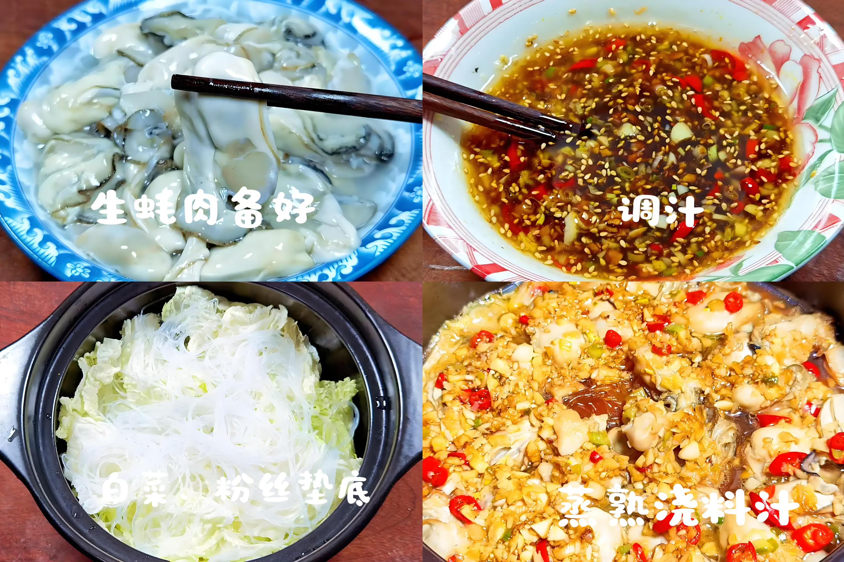 1、生蠔肉用少量澱粉輕輕抓洗,沖掉雜質,瀝乾水備用。粉絲用溫水泡軟。白菜洗淨,菜幫切塊,菜葉撕大片。