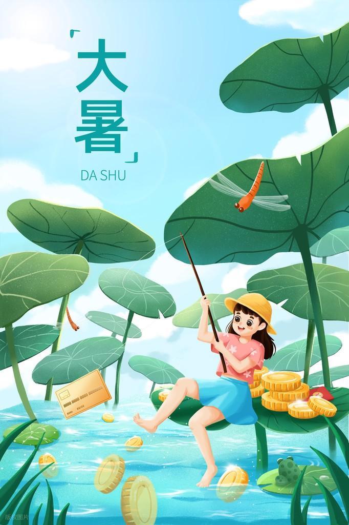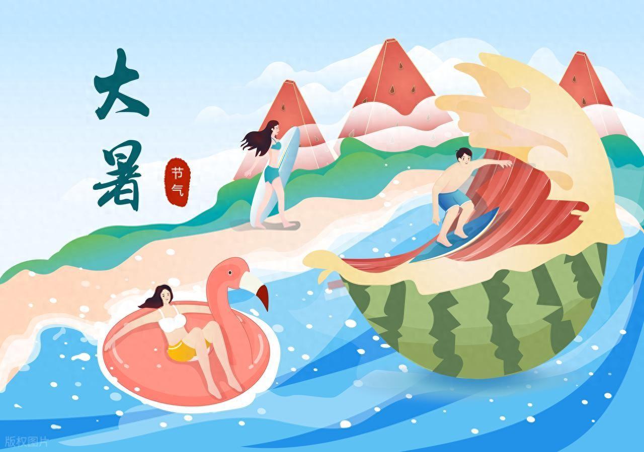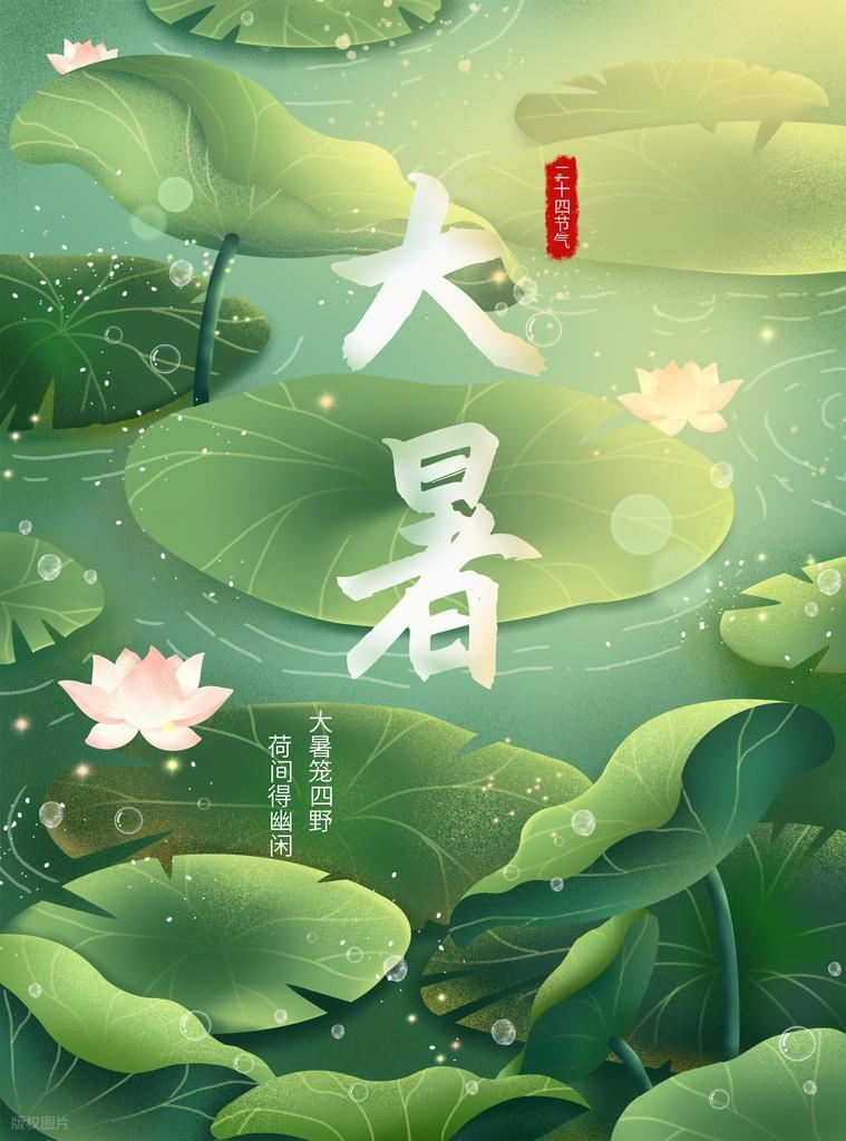 “大暑三秋進,林鐘九夏移。”大暑,作爲二十四節氣中的第十二個節氣,通常在每年的7月22日至24日之間。它是夏季的最後一個節氣,也是一年中最熱的時候。此時,太陽到達黃經120°,酷熱難耐,暑氣達到頂峯。同時,盛夏也會帶給我們許多的美好,荷塘蓮花競相開放,給人以視覺的震撼;冰鎮西瓜的清甜爽脆,給人以味覺的衝擊。