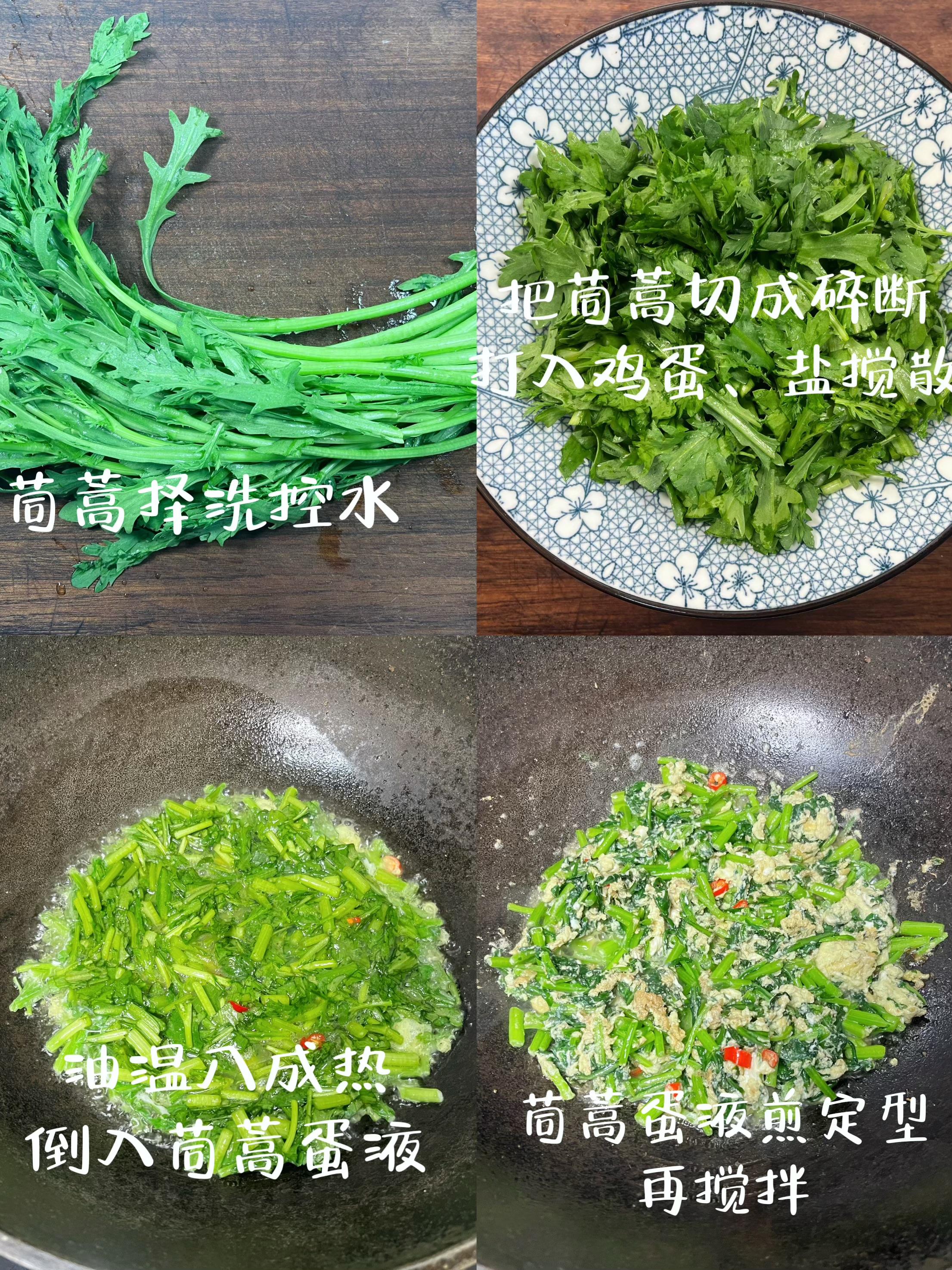 4、保持中火,翻炒至雞蛋完全凝固成塊、茼蒿熟透變軟(顏色依然翠綠),即可關火出鍋。追求鮮嫩口感,切記不可炒老。