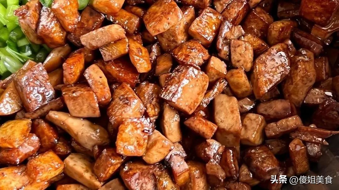 焯過水的紅薯莖葉剁得細碎,碧綠生青地堆在盆裏。倒入放涼的琥珀豆腐丁,香油繞着圈淋上去,鹽花輕輕一撒。白瓷盆裏金綠交映,兒子偷捏了塊焦香豆腐塞嘴裏,鼓着腮幫子嘟囔:“比肉還香!”