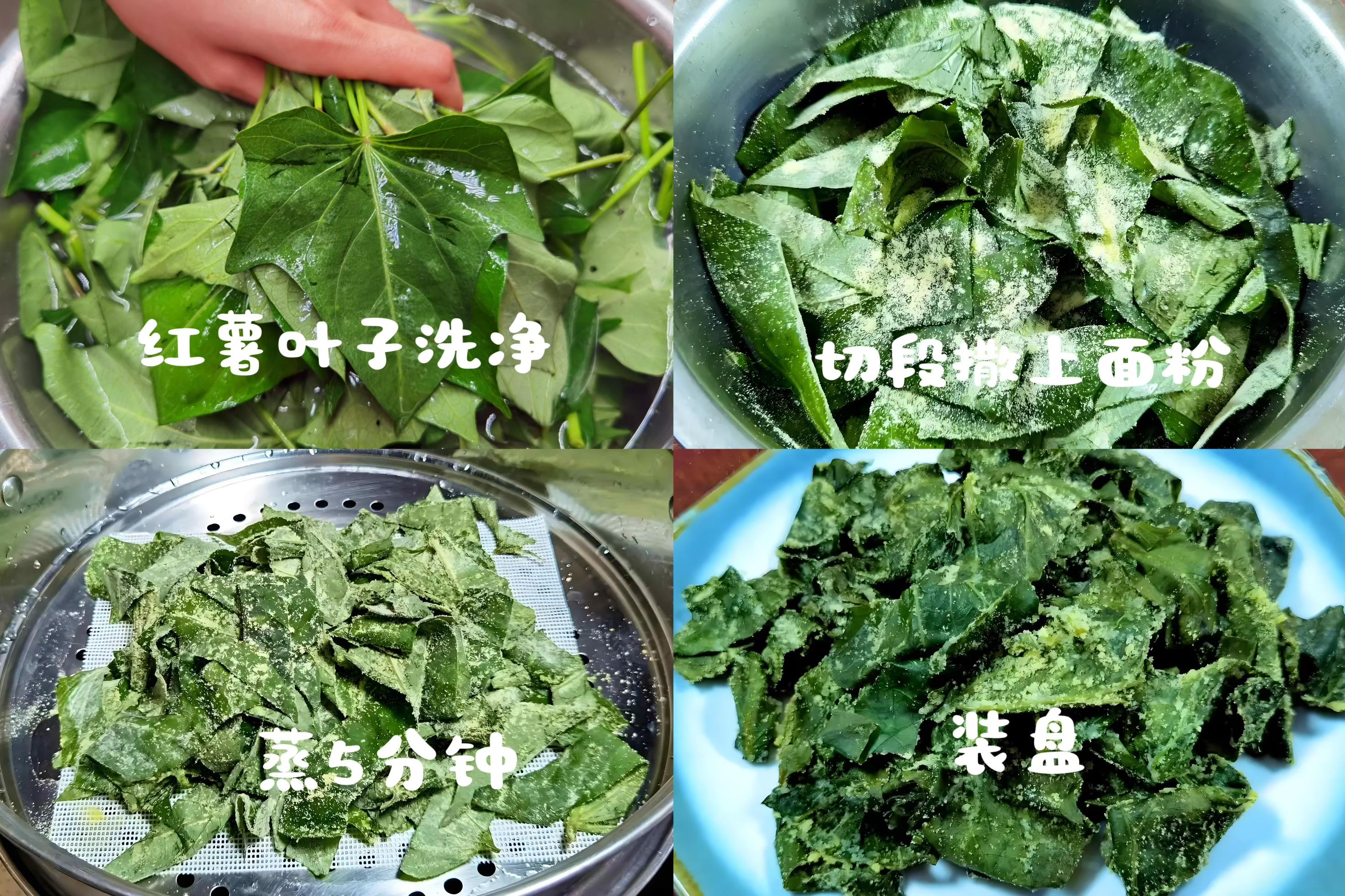 1、紅薯葉摘取嫩梢,仔細洗淨,充分瀝乾或用廚房紙輕輕吸去表面多餘水分(這步很重要,蒸出來才清爽不爛)。